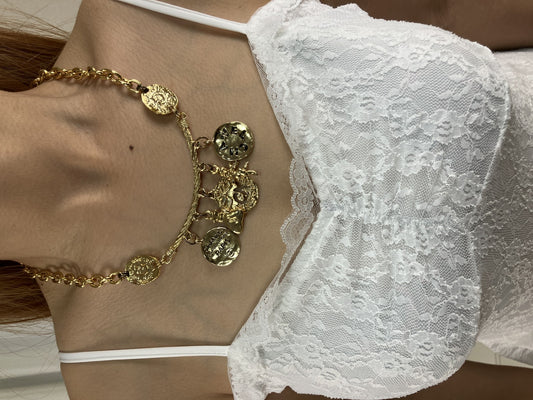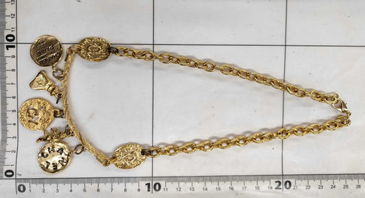 CHANEL Vintage Charm Necklace Gold Tone Coin Angel Perfume Pendant