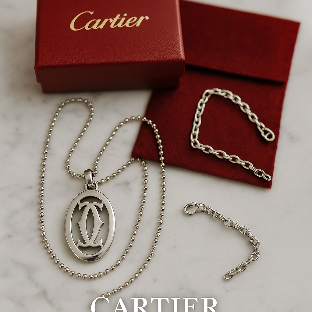 HERMES Symbol Pair Necklace 2000 Silver-Tone Metal Top 4×2cm Black Leather Cord with Box
