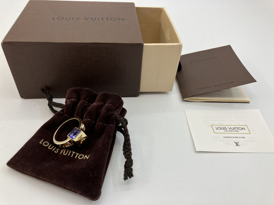 Louis Vuitton Berg Gamble Ring Blue Stone Gold Tone M65099 EU50 JP10 US5.5 GL1029