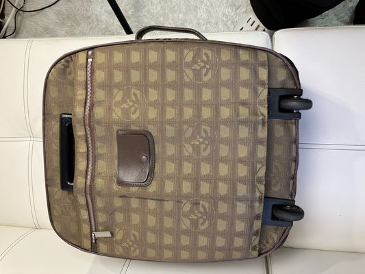 CHANEL New Travel Carry-on Suitcase, 45cm (height) x 40cm (length) x 20cm (width) (excluding fixed handle), Nylon SVMetal, Khaki x Brown, 7277067