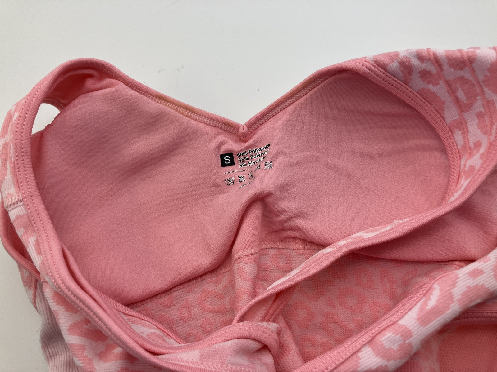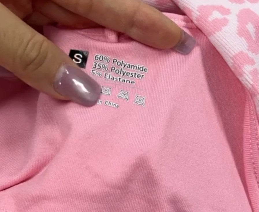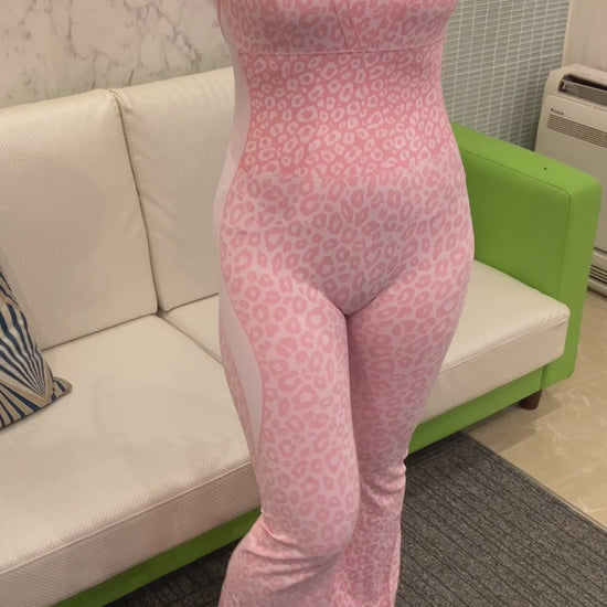Pink Leopard Jumpsuit Catsuit Halter Cross Back Open Back Flare Leg Pads S