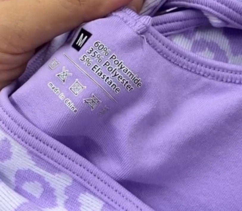 Purple Leopard Jumpsuit Catsuit Halter Cross Back Open Back Flare Leg Pads M
