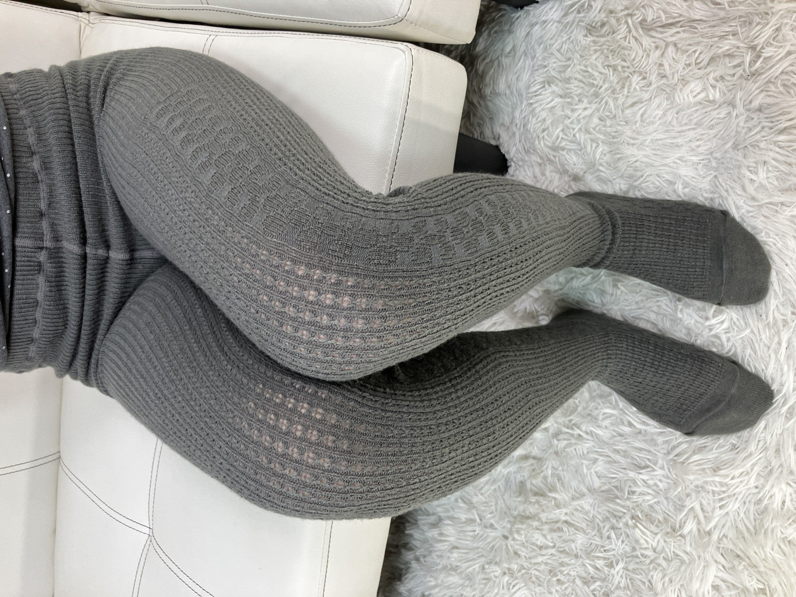 CELINE Knit Tights Leggings, Gray, Size M, Hips 85-98cm, Height 150-165cm, D-TK1200, Model Wearing.