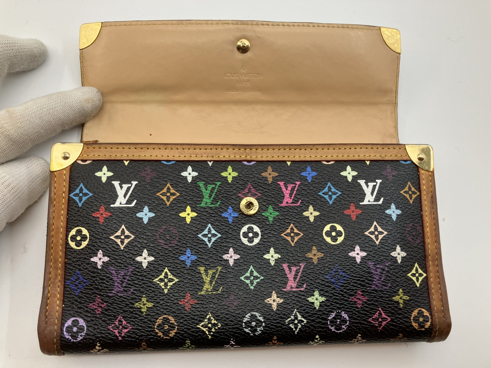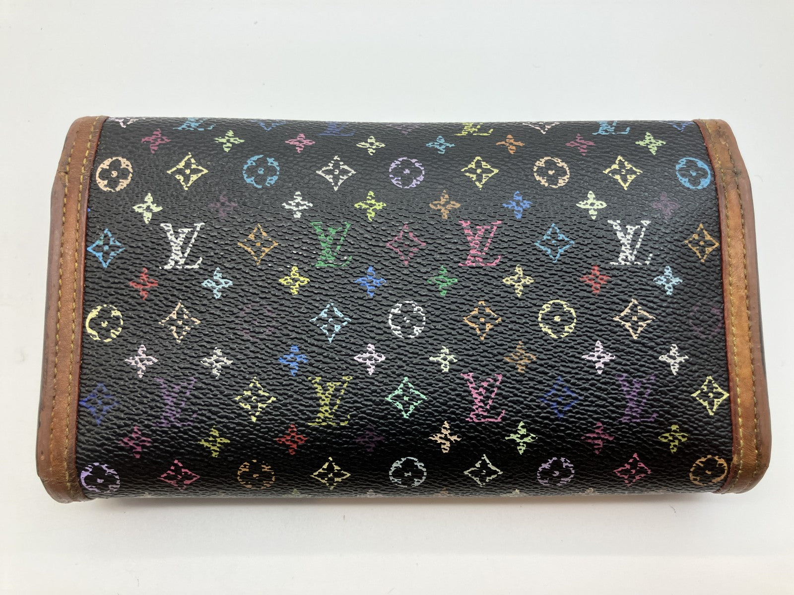 Louis Vuitton Monogram Multicolore Porte Tresor Purse, International M92658, Black, Made in France, 19x3.9" (M92658 International Purse, 19x10cm), Made in France