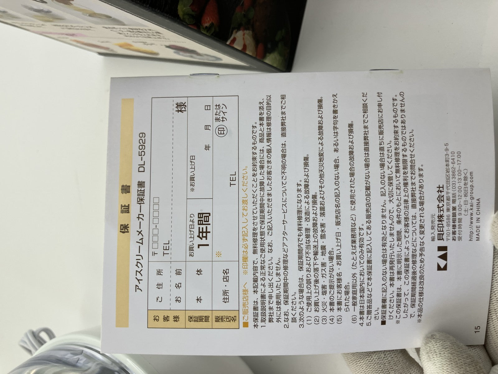| Production features | This is a brand new, unused Kai electric ice cream maker DL5929. |