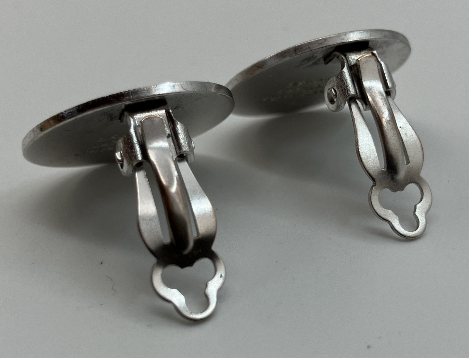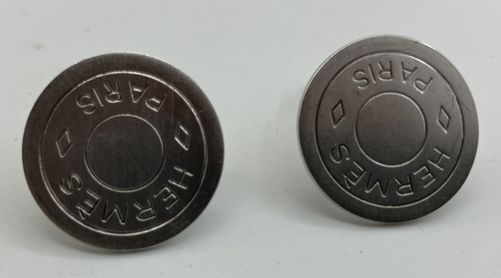 HERMES Sellier Button Clip-On Earrings Silver Tone 2cm Pair Vintage with Box Authentic