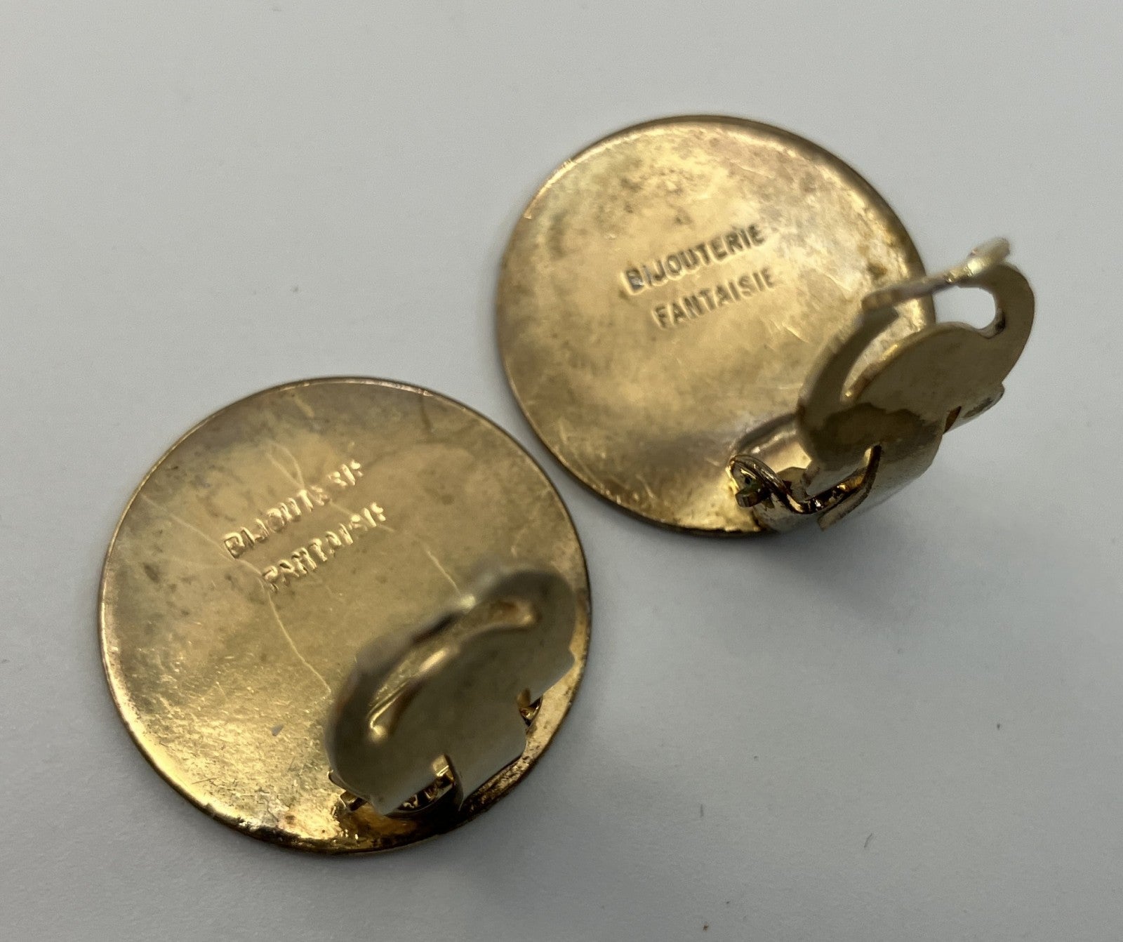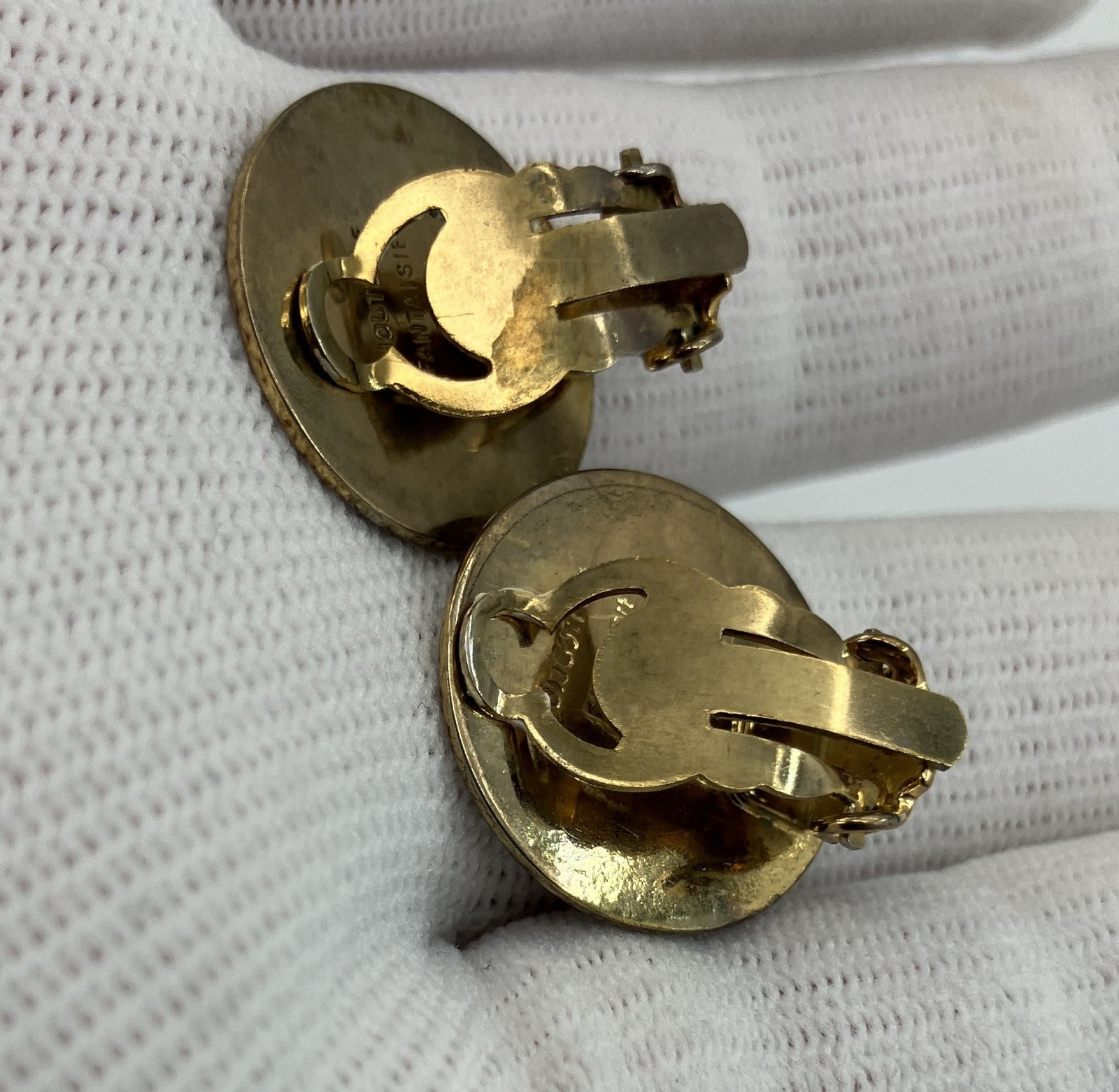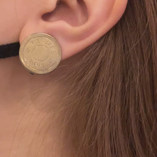 HERMES Sellier Clip-On Earrings Gold Tone Round Logo 20mm Bijouterie Fantaisie