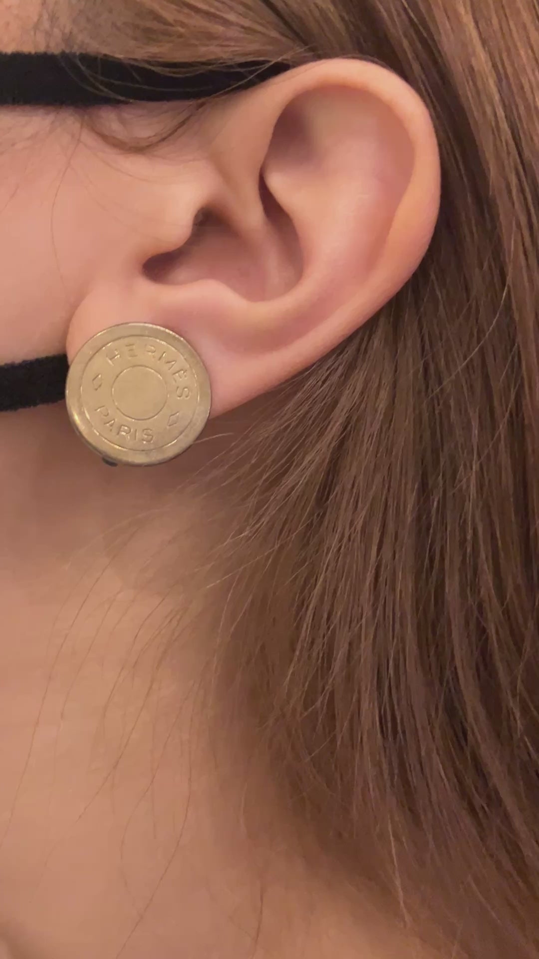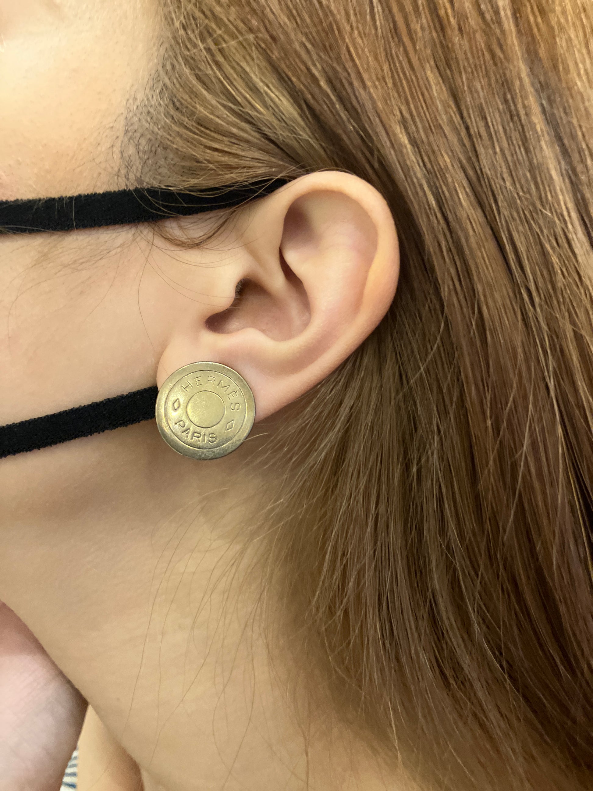 HERMES Serie Earring, Gold Logo, Round, Diameter around 0.8", Clip-on