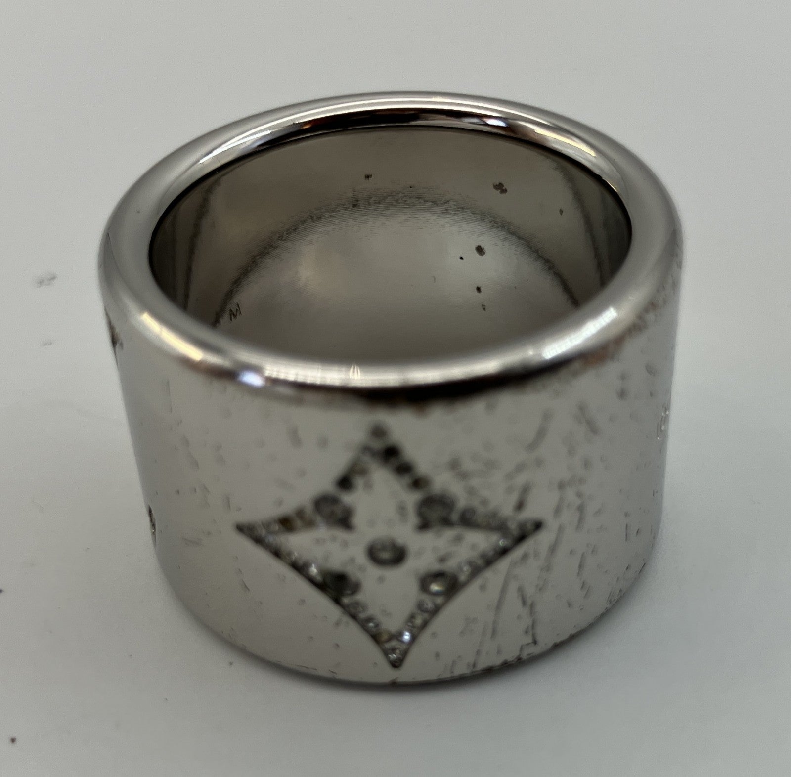 LOUIS VUITTON Monogram Strass Ring M68250 Size M Silver Tone JP19.5 US10 EU60–61 w/Box