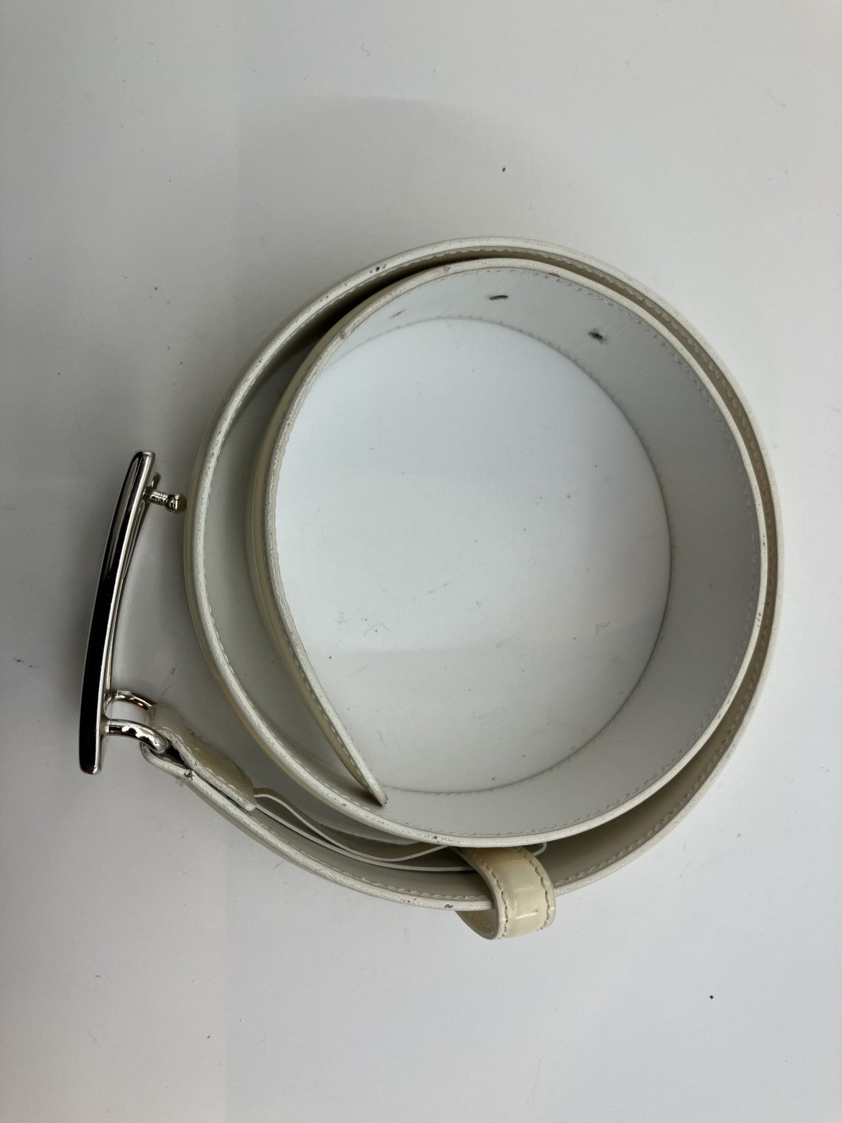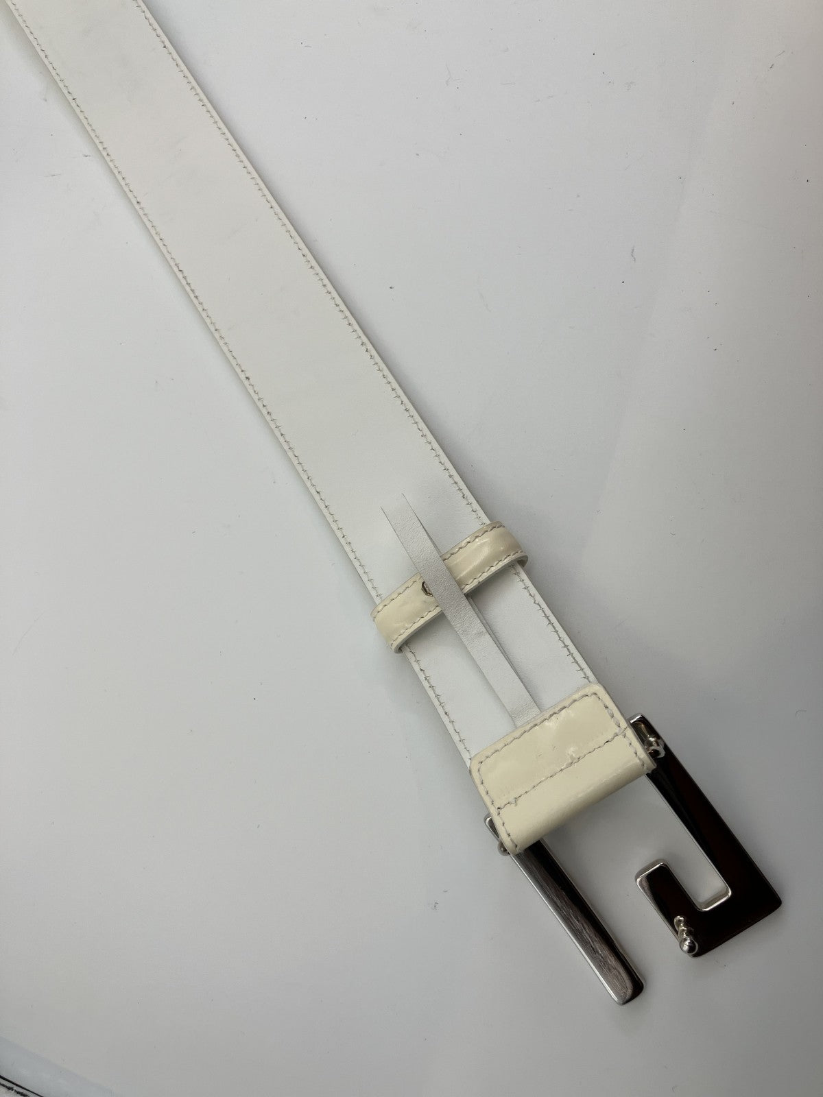 GUCCI Gロゴバックル 037 1046 1107 ベルト 全長87cm 幅4cm アイボリー&シルバー 送料無料