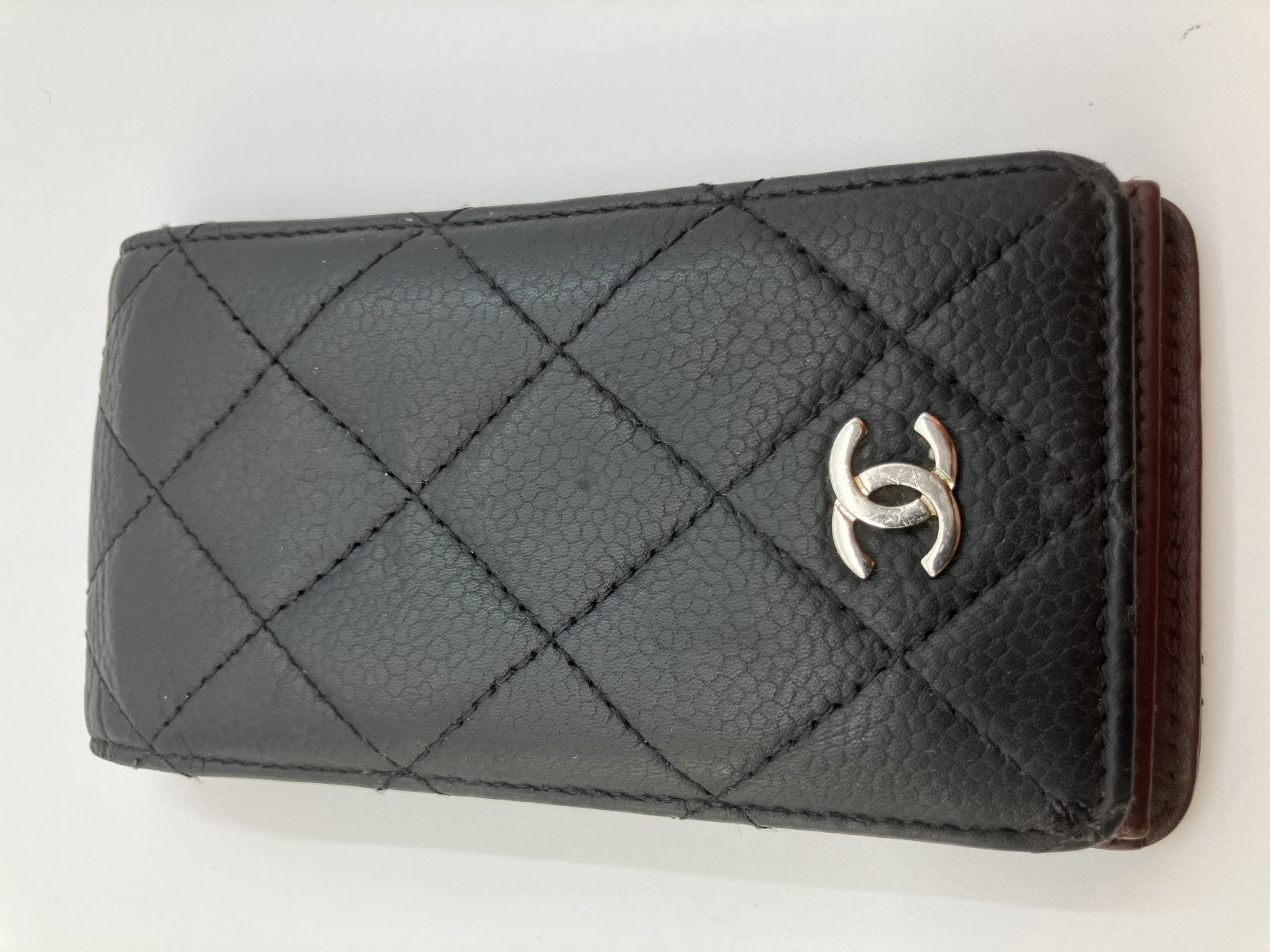 Chanel Phone Case Black Caviar Skin 12.8×6.8×1.5cm Quilted Leather with Serial Sticker Made in France