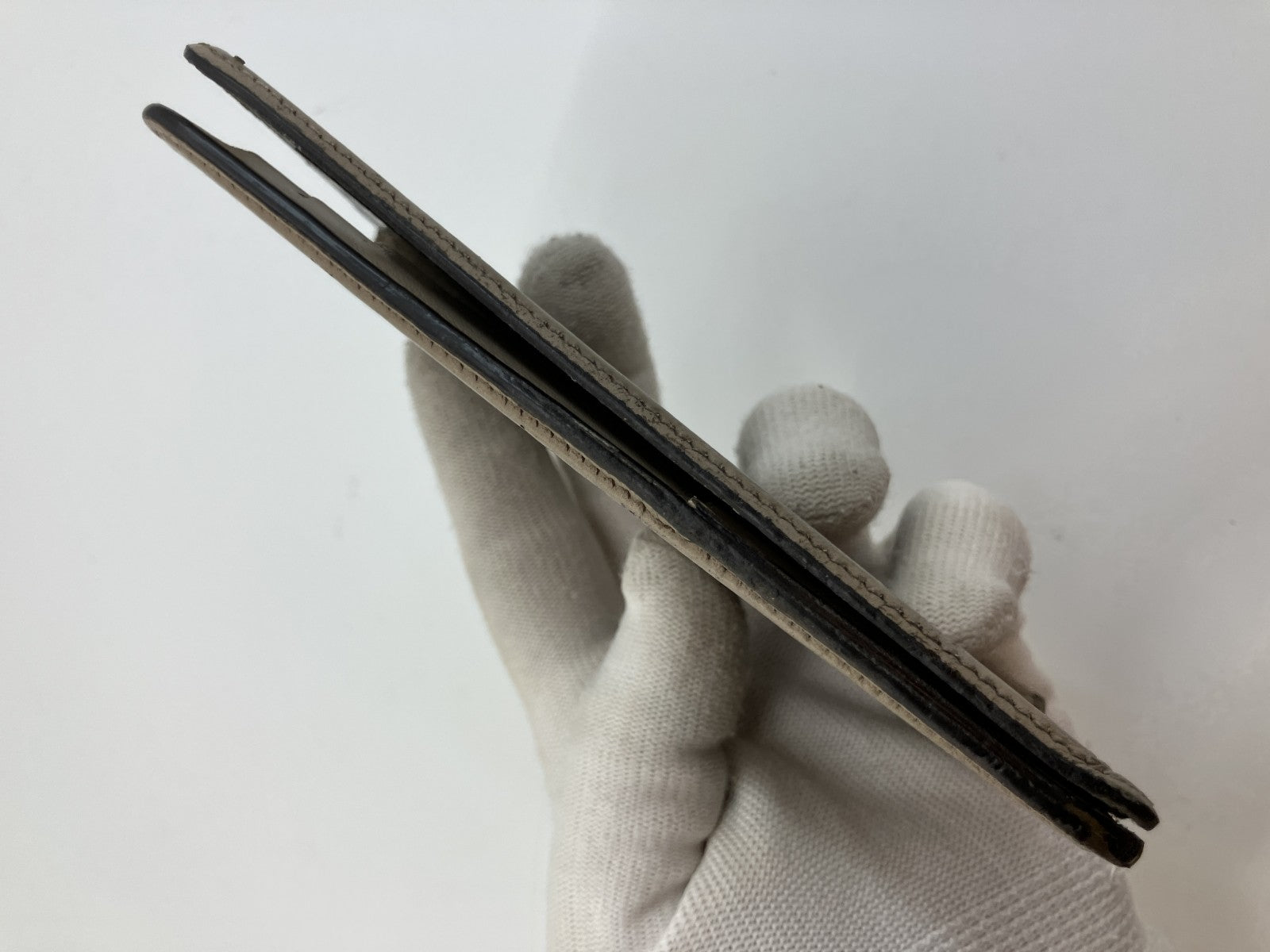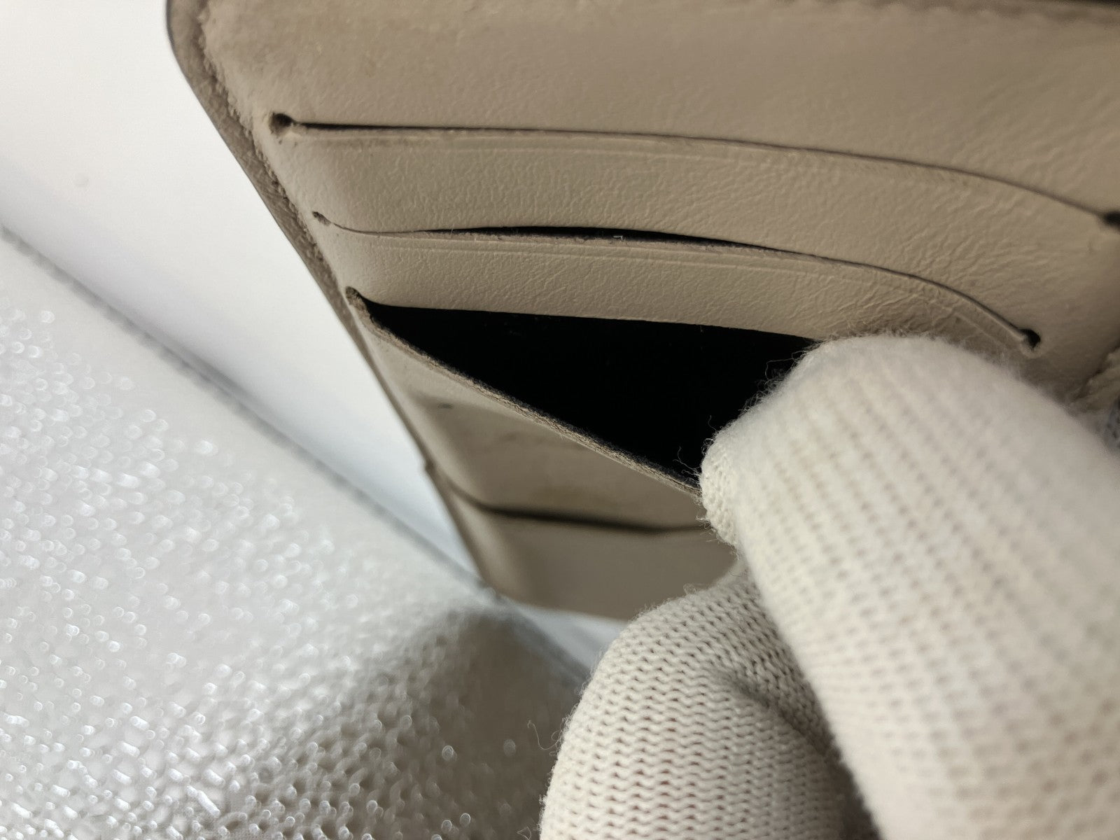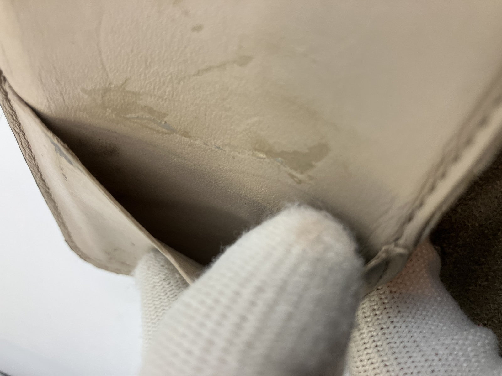 Pre-owned with heavy signs of use. Overall scuffs, dirt/stains, edge wear, shape loss/warping. Dark marks and peeling/adhesive residue inside card area; abrasions around camera opening and edges; lining wear on hinge. Still usable. Please review all photos carefully.
