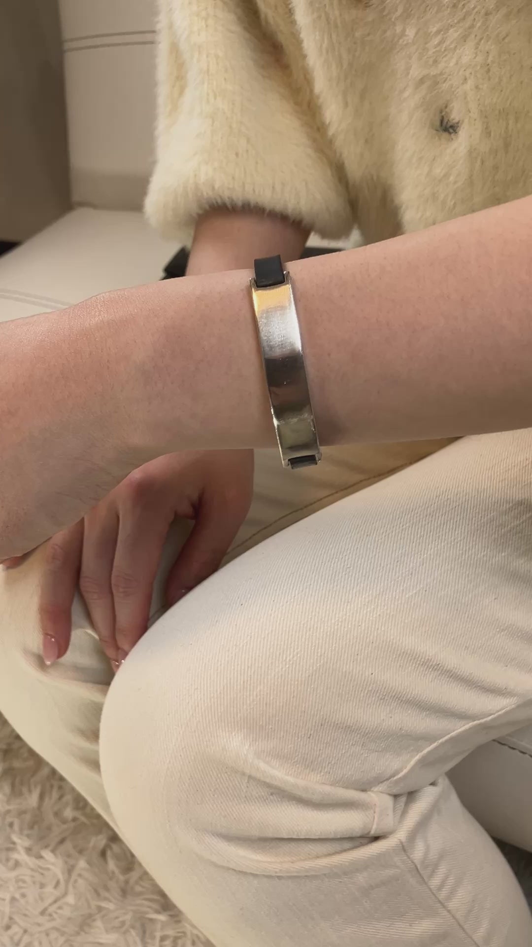 GUCCI Bracelet in Silver 925 with Black Rubber, Circumference of Wrist Around 6.7 inches, Unisex
