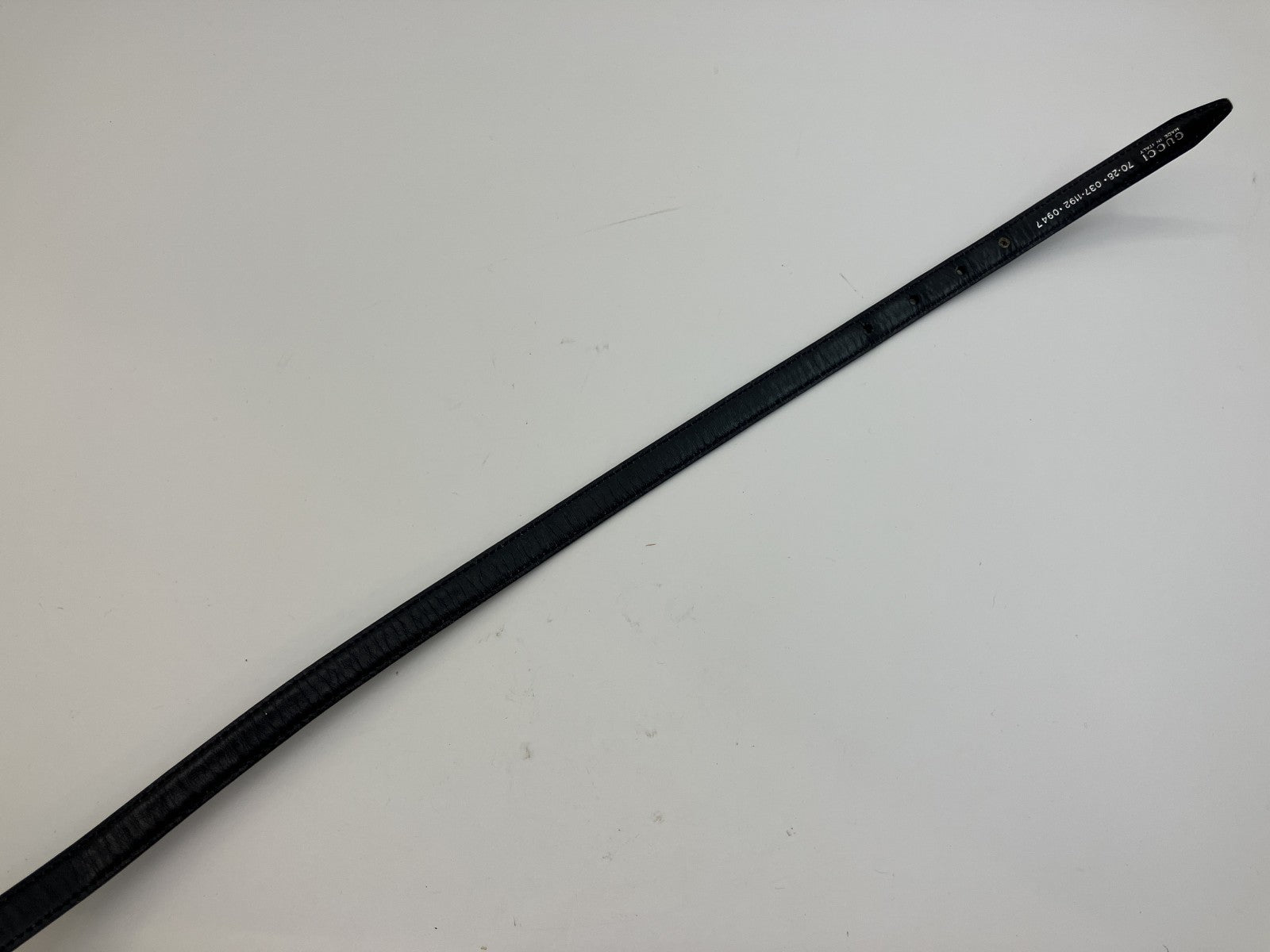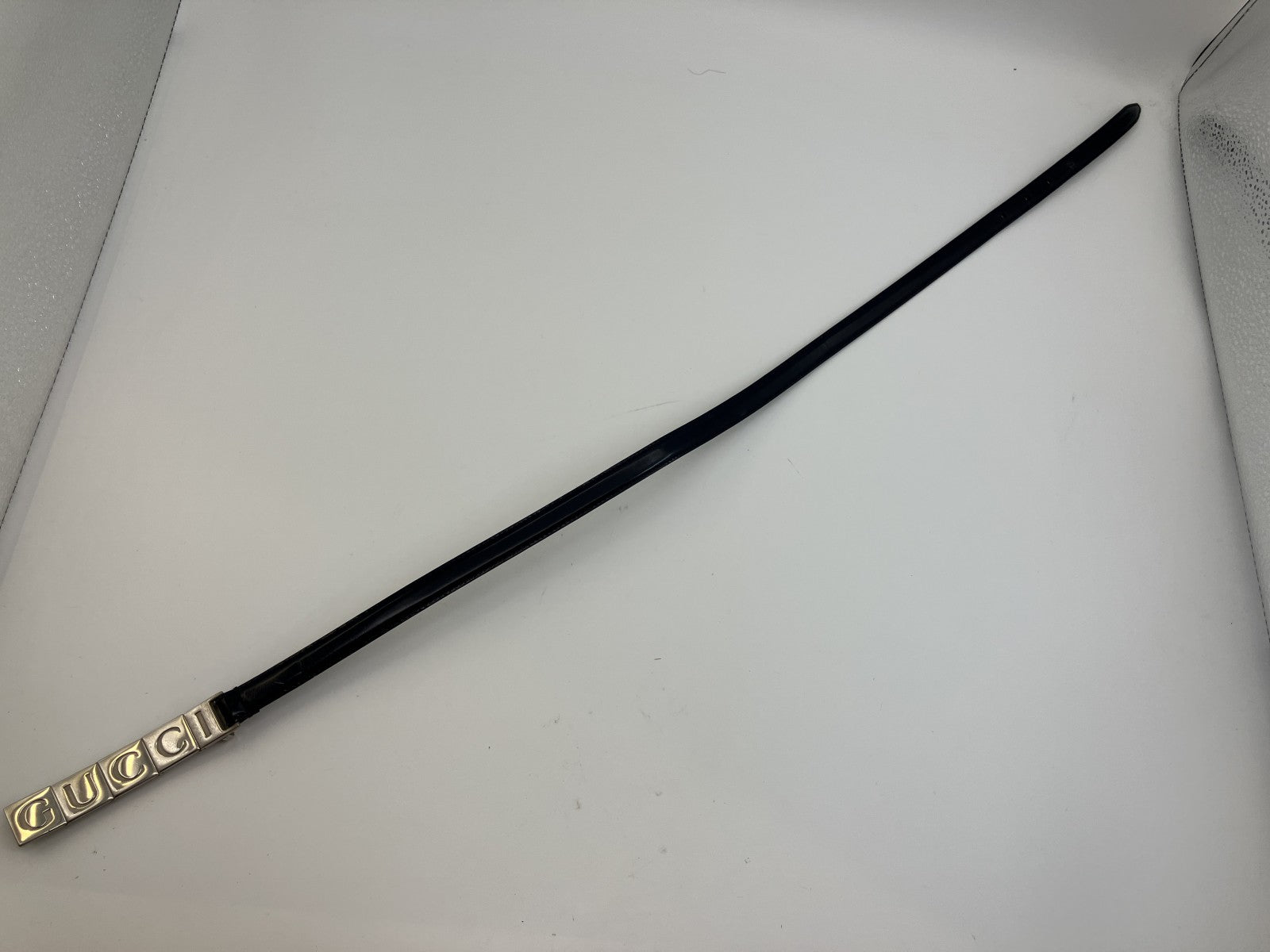 GUCCI Logo Plate Skinny Belt Navy Leather 70/28 84cm Made in Italy