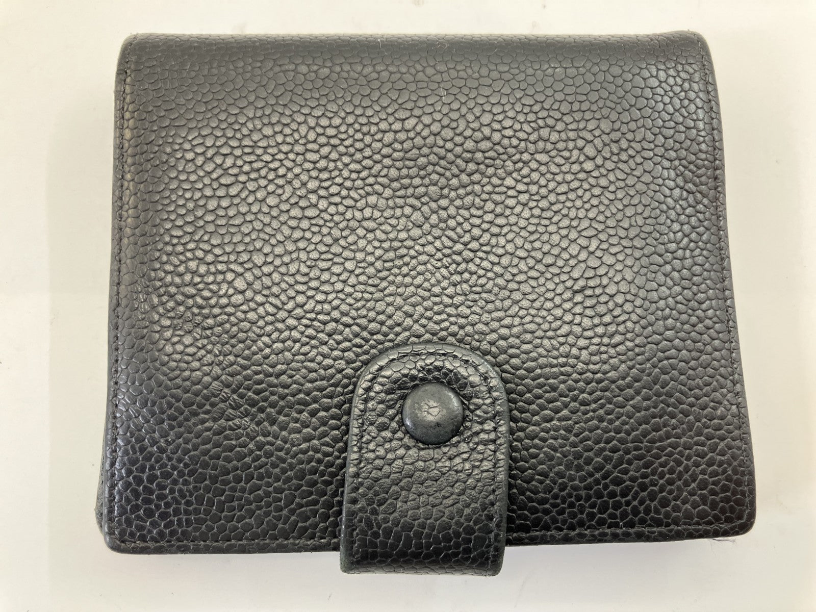 CHANEL Caviar Skin Wallet Compact Bifold Wallet Black No Seal