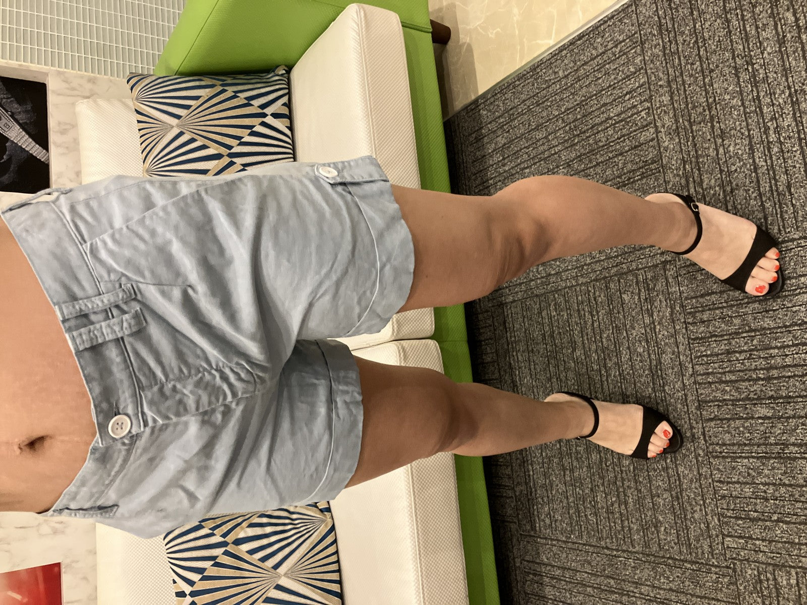 Blumarine Italian-made cotton shorts, light blue, IT40/D34, with a metal B logo and cuff flaps.