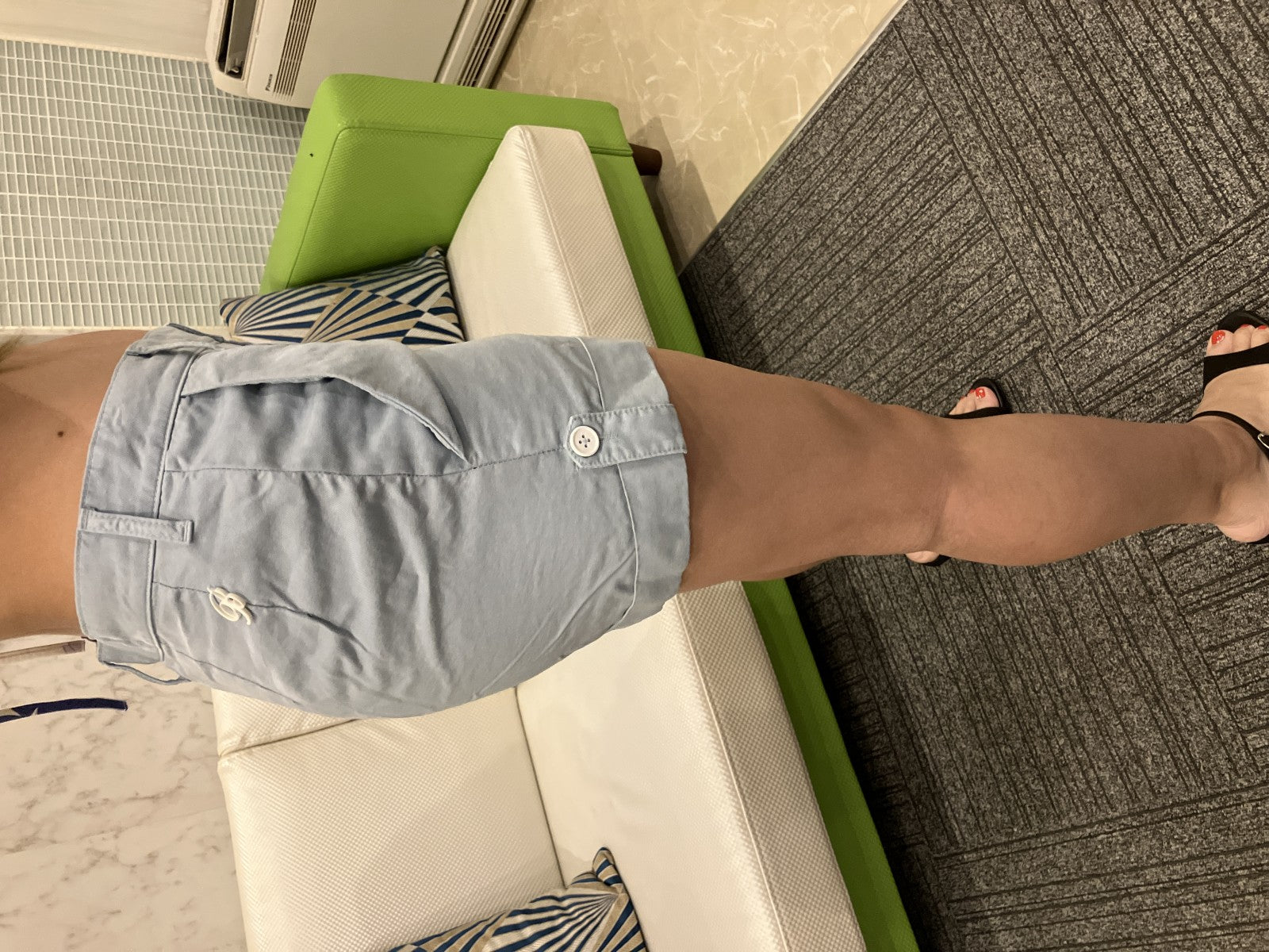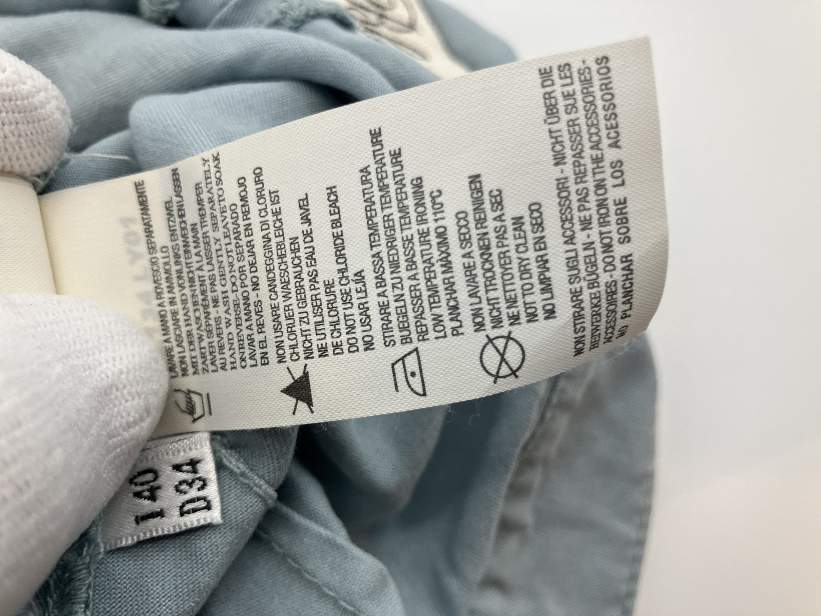 | Production features | These shorts are from Blumarine. Made in Italy, they feature an elegant light blue color. The B Metal logo on the front adds a subtle accent, making these simple yet brand-name shorts. The cuffed hem creates a slimming silhouette around the legs. About the brand Blumarine is an Italian women's brand that offers many items centered around elegance and femininity, and is popular among those who like a clean, European-style look. "Made in Italy," "quality materials," and "with logo" are easily appreciated, and are a popular choice for those who like these things. Size notation Tag notation: IT 40 / D34 Fitting model information Waist 25.6" / Hips 35.4" / Inseam 27.6" *Please use the photos of the item being worn as a reference for fit, based on this body type. Material ・100% cotton (tag: COTONE/COTTON 100%) - Some tags say **100% rayon** (possibly incorrect part: pocket lining, etc.) *Image tag notation takes priority. Care (tag contents) ・Hand wash (gentle, separate wash) ・Do not soak/Recommended to turn inside out ・Do not use chlorine bleach - Low temperature iron (maximum 110°C) ·Do not dry clean ・Please be careful when ironing accessories (logos, etc.) Shipping and Precautions -As this is a second-hand item, please understand that there may be minor rubbed marks and signs of use. -Since each item is unique, it may be sold out depending on the timing. ・If there is a significant difference from the product description, we will respond in good faith. ・English, Japanese and other languages available (please contact us for details). Secondhand goods dealer license number No. 431360059517 (Saitama Prefectural Public Safety Commission) 100% authentic (inspected) purchased from a major domestic auction company. |