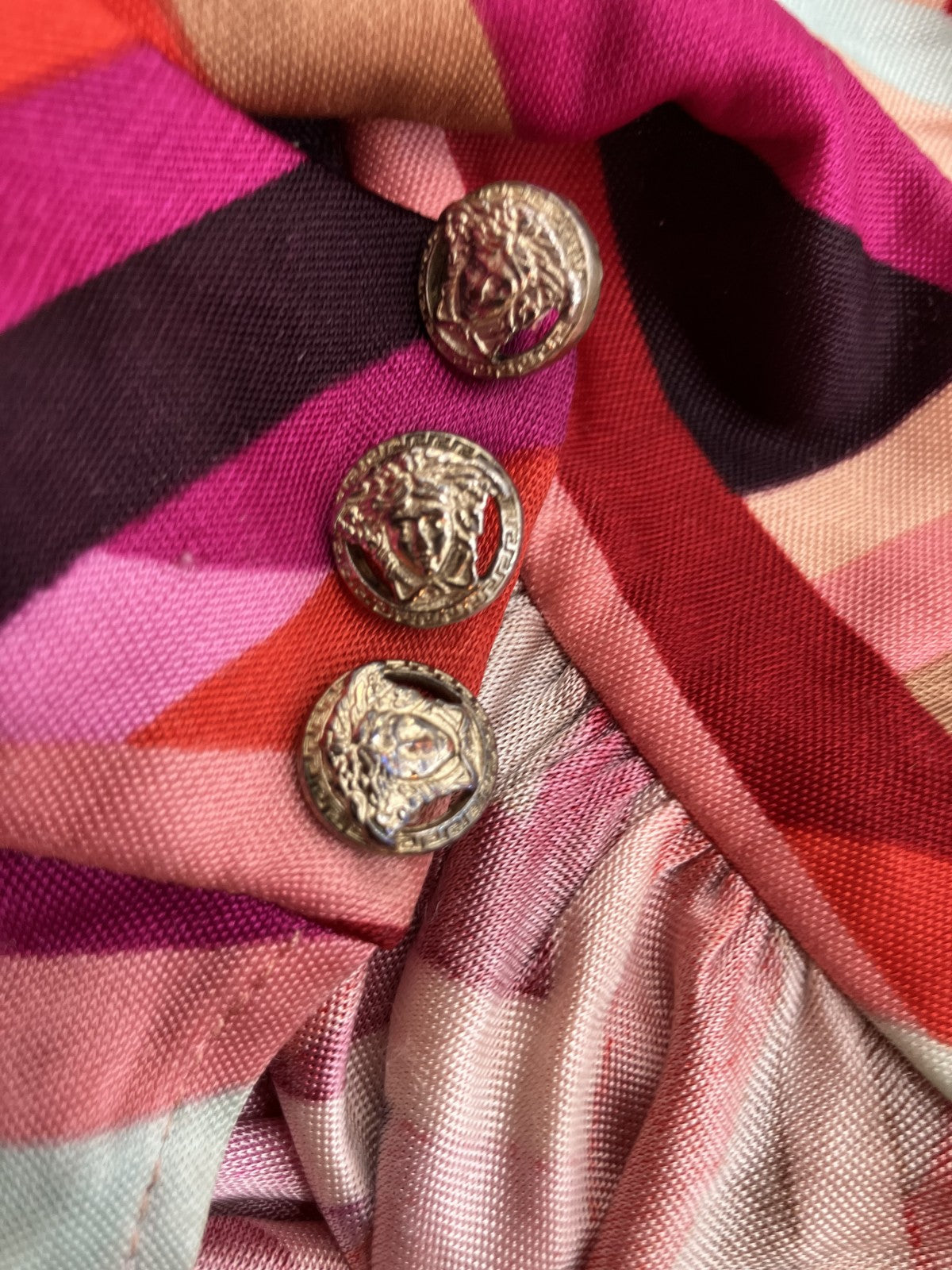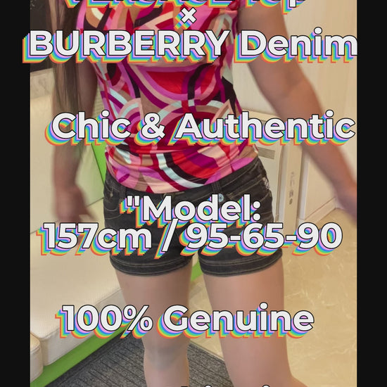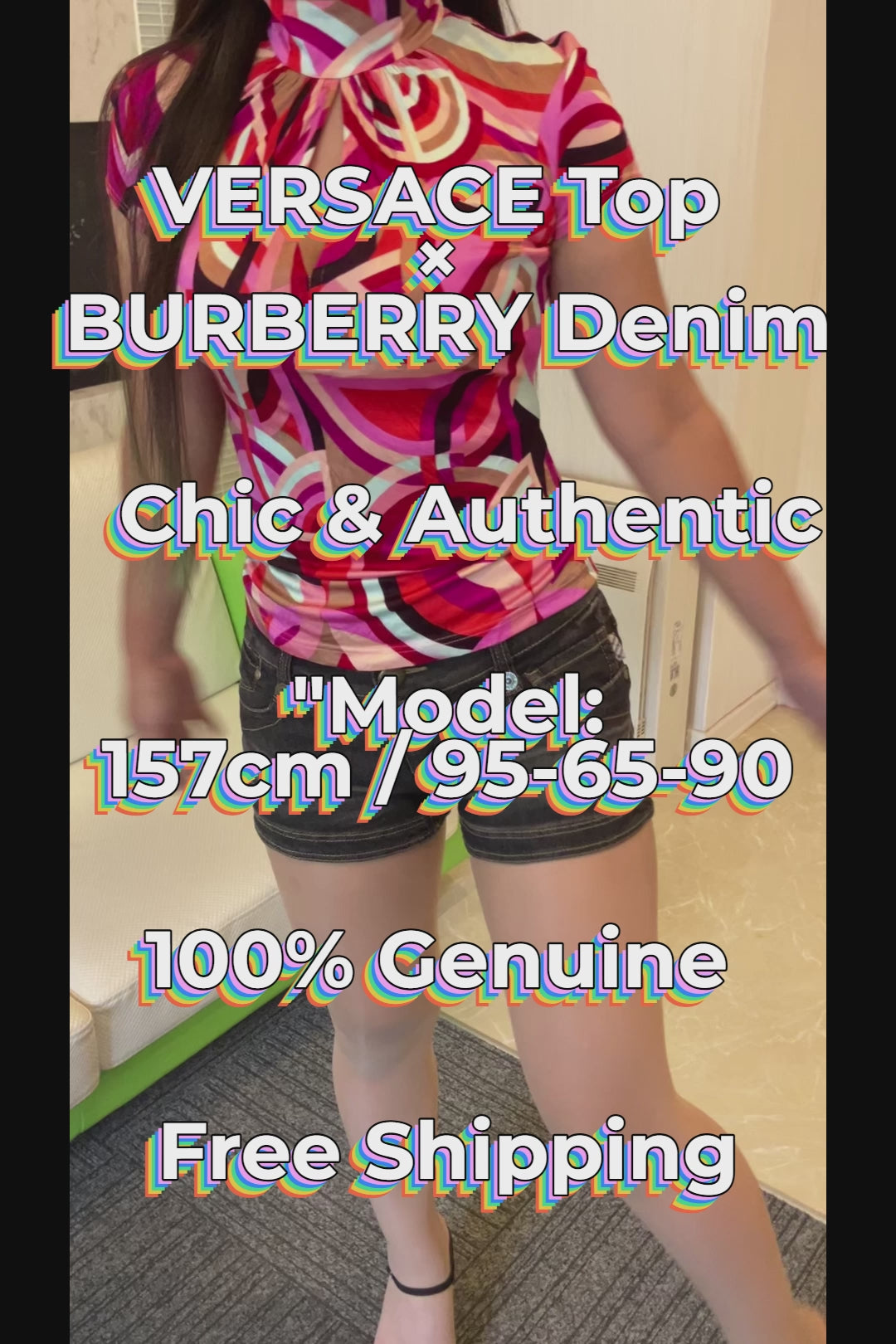 VERSACE Pink Geometric Top (Size 38) & BURBERRY BLUE LABEL Black Short Denim (Size 38) Set Outfit 窶・