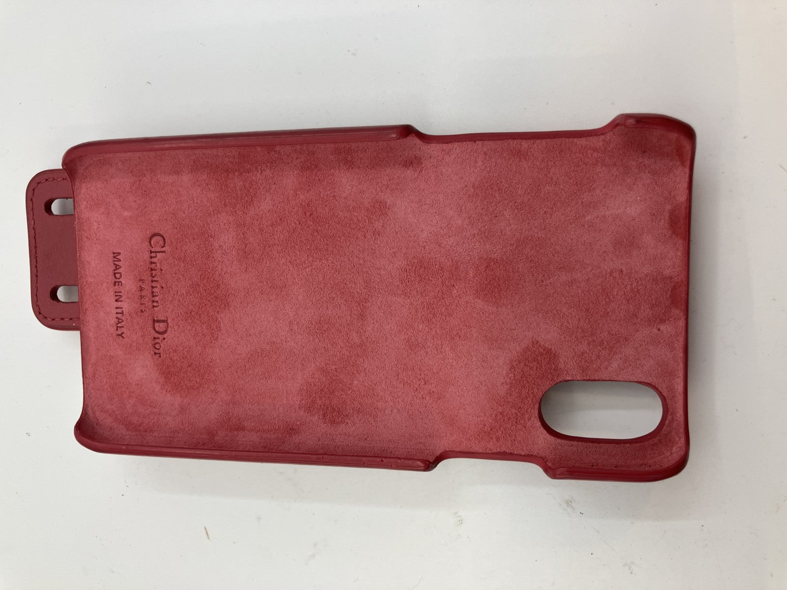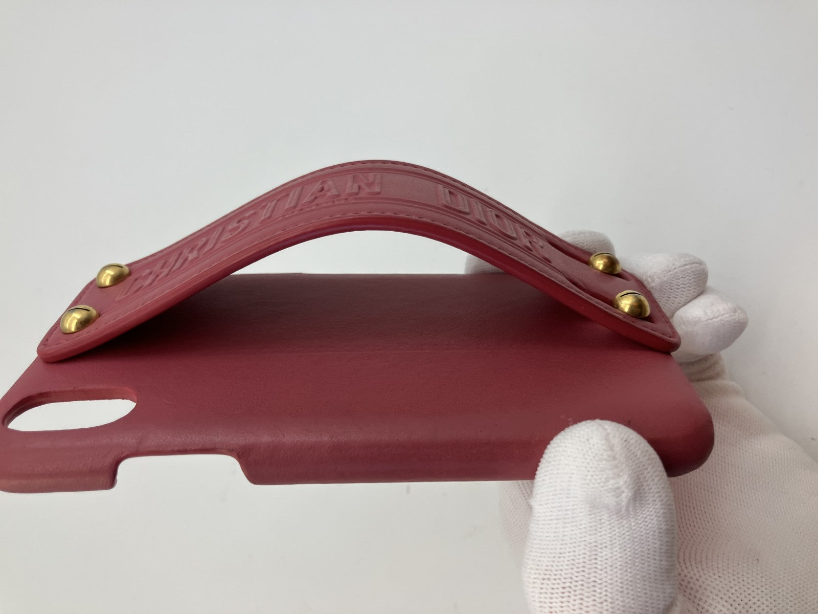 Christian Dior iPhone X/XS Case Red Leather Strap Handle Gold Studs Italy