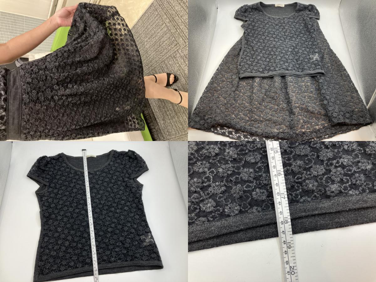 | Production features | This black set from Rene is attractive for its elegant transparency and three-dimensional lace knitting. The top has no lining on the front and is see-through, so we recommend wearing an inner layer. The model in the photo is also wearing an inner layer. The skirt is lined, so you can wear it alone without worrying about it being see-through. The French sleeve style, fitted waistband, and soft flared skirt give off an elegant and feminine impression. [About the brand] Rene is a high-end women's clothing brand from Japan that is renowned for its simple, elegant beauty and comfort. Made with high-quality materials and carefully sewn in Japan, the brand offers a wide range of items that will enhance your everyday life. イ蟆スizeイ サbr> Mark size: 34 Fitted model: Height 61.8" / Bust 95-39.4" / Waist 25.6" / Hips 35.4" / Inseam 27.6" (Please refer to the images for the waist position and length of the model) [Material] Top: 100% wool/Other material: 21% nylon Skirt: Outer fabric 73% wool, 27% nylon / Other fabric 95% wool, 5% cashmere / Lining 100% polyester イ蠢フatusイ サbr> - Rubbed and fluffed overall -Stained lining (see image) 郢晢スサPeel on tag - There is a small fray on the bottom back of the top, around 2" from the center (see image). *Secondhand goods dealer license number No. 431360059517 (Saitama Prefectural Public Safety Commission) *100% authentic (inspected) purchased from a major domestic auction company. * *Customs duties are the responsibility of the buyer. *If there are any discrepancies with the product description, we will respond sincerely. *Multilingual support is available (English/Chinese OK) |