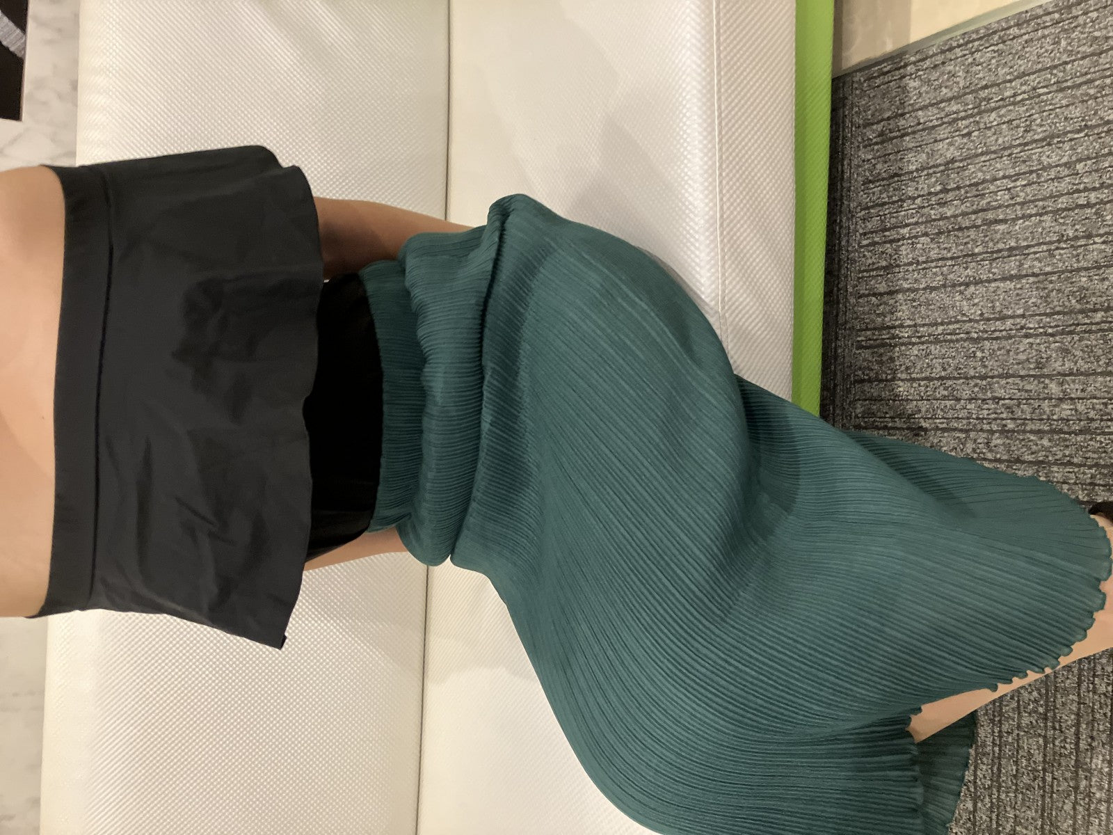 Used Yoko Chan Black Off Shoulder Ruffle Top Size 40 with Green Pleated Skirt Women カ蜀ア Elegant Flare Outfit
