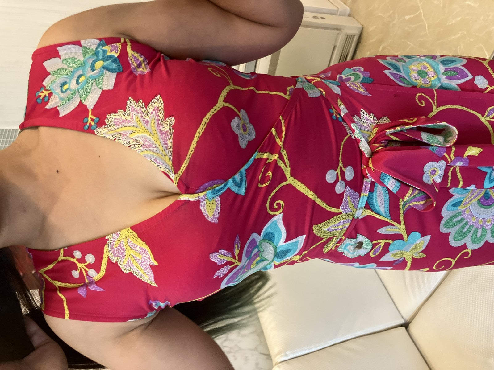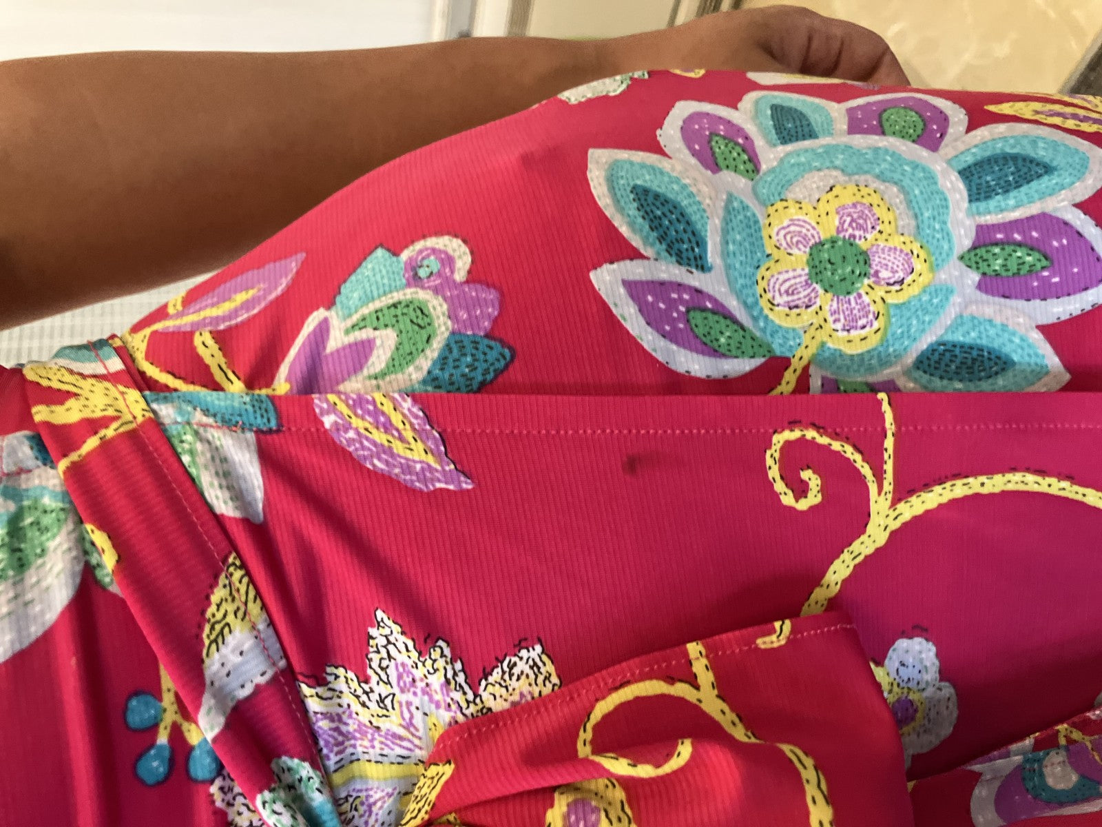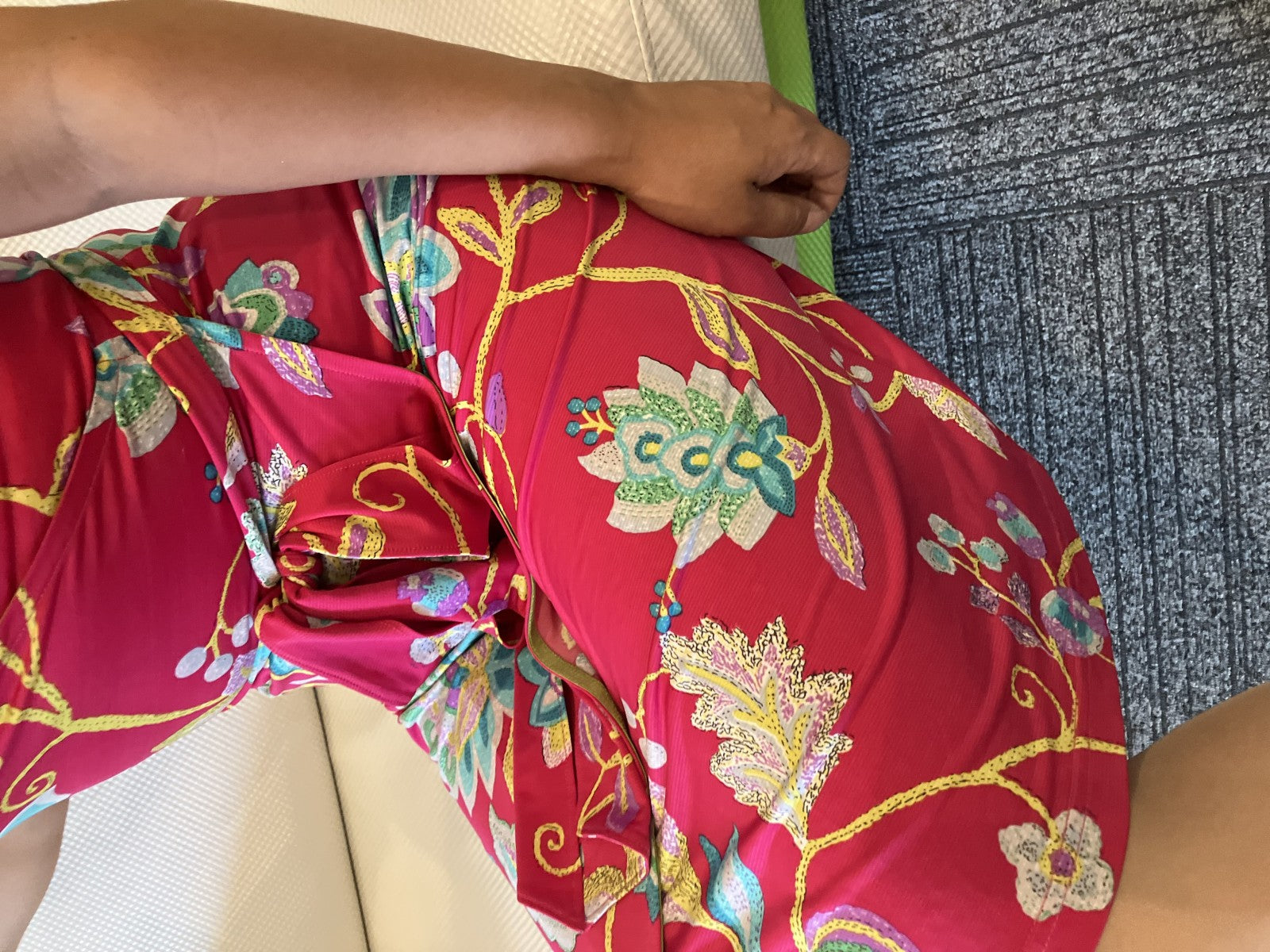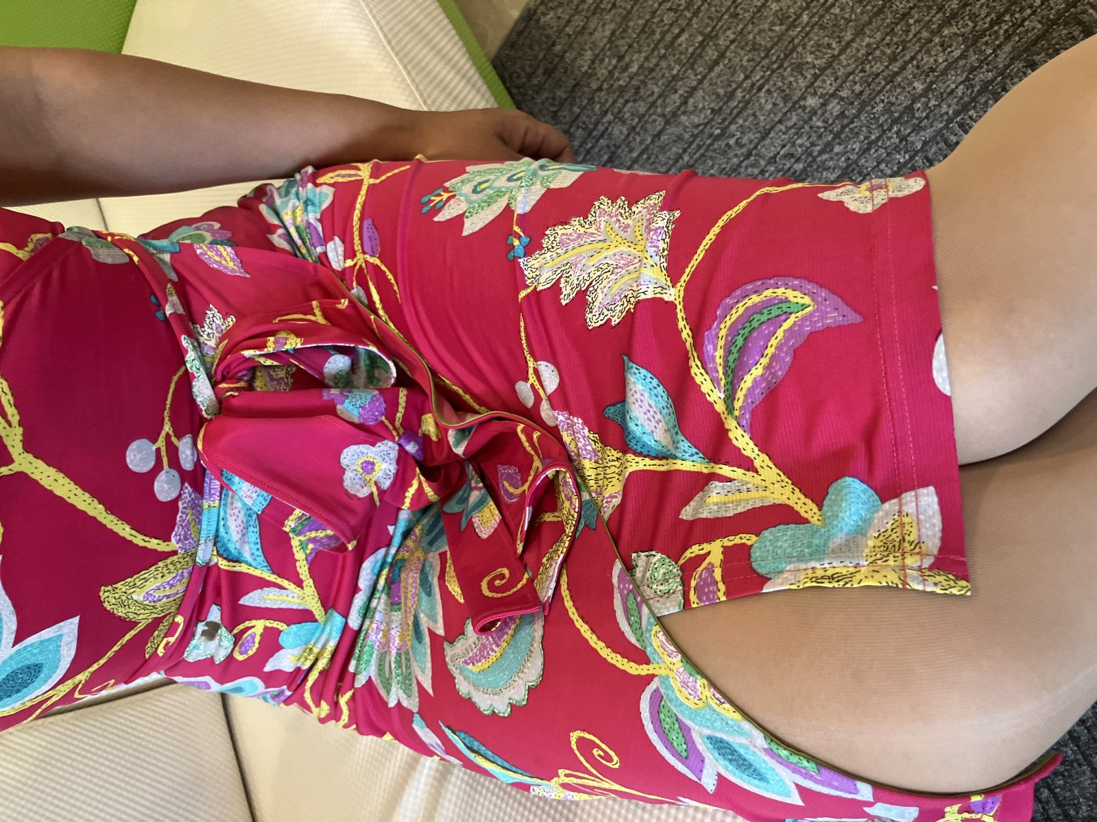 | Condition Details | Pre-owned, very good. Minor stain shown in photos. No major flaws. Belt included. Fabric retains stretch. |