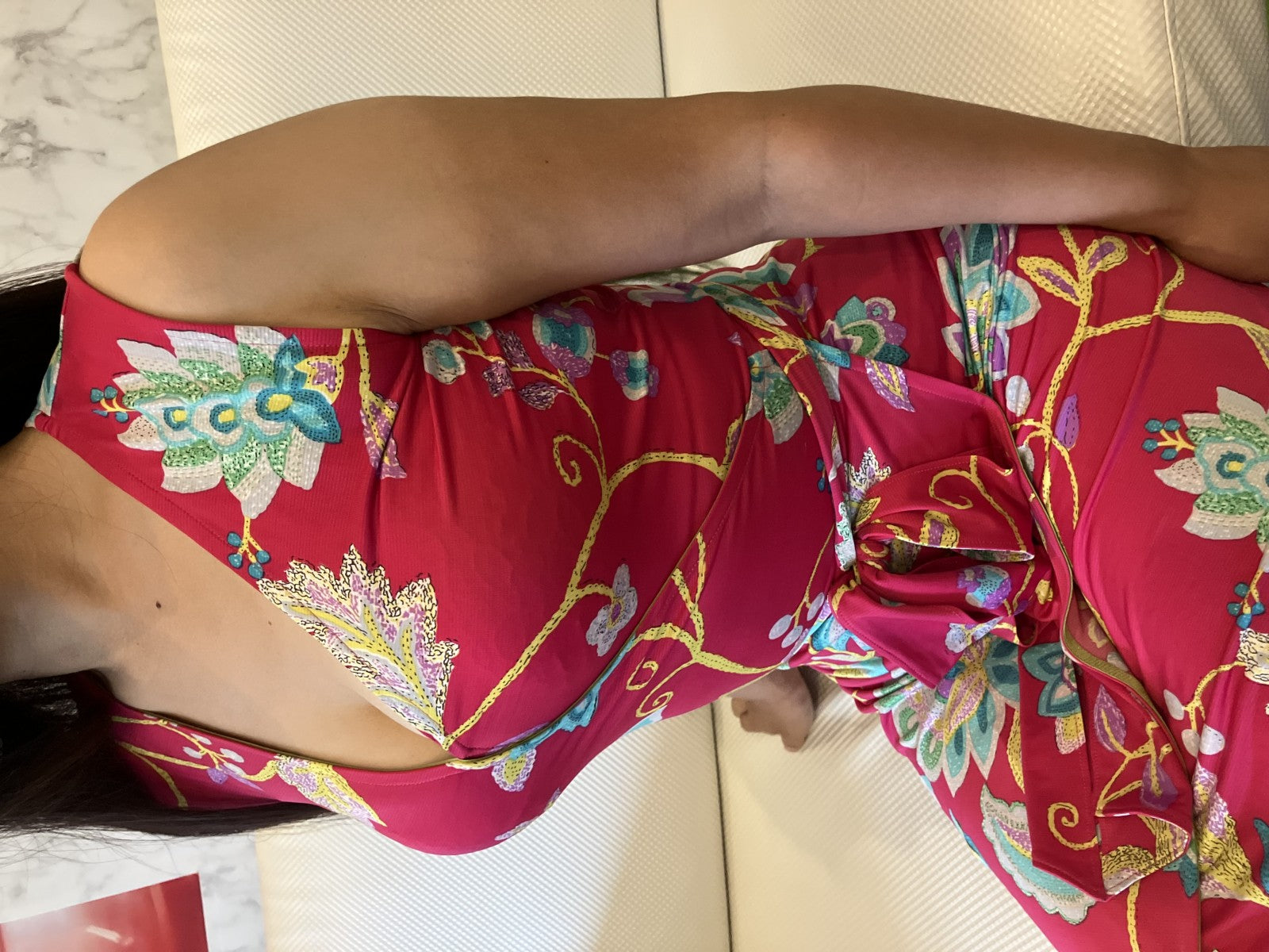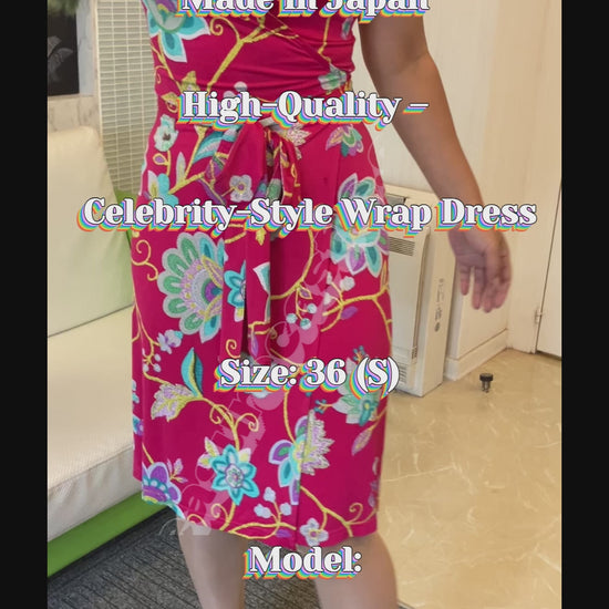 Regina Romantico REGINA ROMANTICO Made in Japan Floral Print Stretch Jersey Wrap Dress, Size 36 (S), Sleeveless, Knee-Length, Pink,