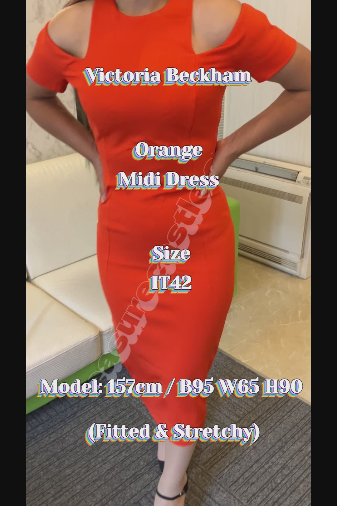 Victoria Beckham Orange Bodycon Midi Dress Off Shoulder Italy Size 42 Free Ship