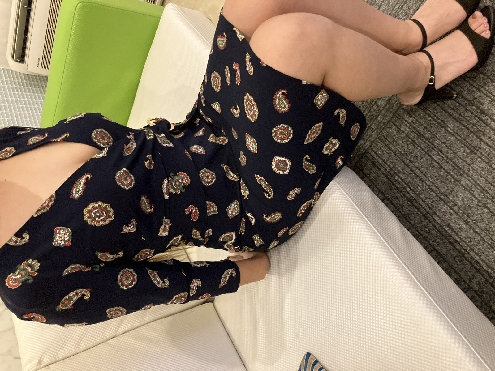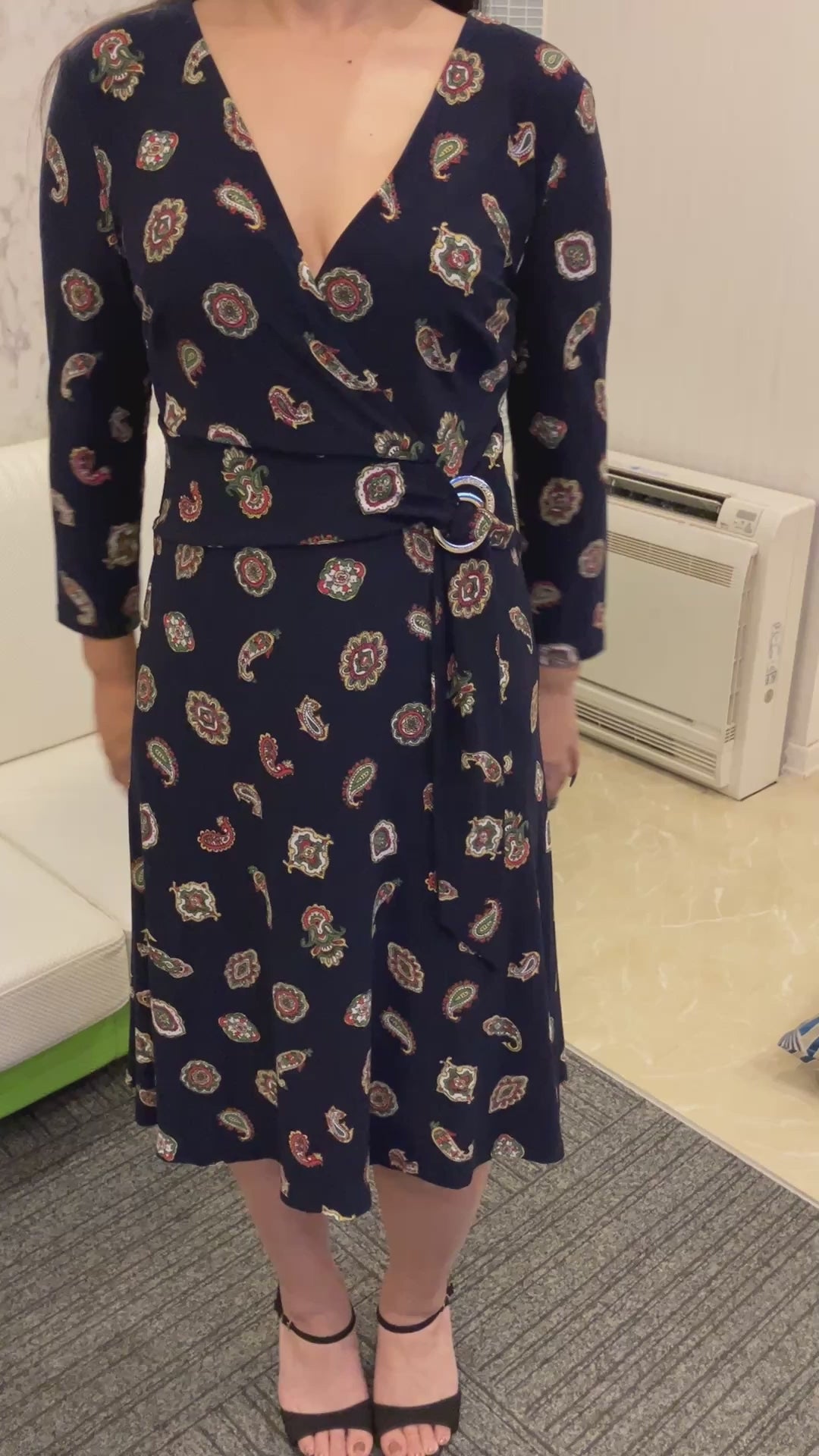 | Production features | This is a one-piece dress from LAUREN RALPH LAUREN. This navy-based piece features a paisley-style all-over pattern, making it both elegant and eye-catching. The V-neck wrap-around design and gold metal ring at the waist add accents. The zipper on the back makes it easy to put on and take off, and the flared silhouette gives it a feminine look. This is a used item, so please understand that it may have some signs of wear. Please check the images for the condition. ■ Fitting model information The fitting model's body shape is as follows (all measurements taken with a tape measure while wearing underwear). Height: 61.8" Bust: 95-39.4" Waist: 25.6" Hips: 35.4" Inseam (under the thigh): 27.6" Thigh width (at the base of the thigh): approx. 10.6" *This is a guideline when standing naturally. Shoe size: approx. 9.3" *Fit may vary depending on foot shape and shoe design. ―――――――――― ■ About wearing size and fit The top is equivalent to a size S to M. The bottoms are wearing a size M. The actual fit and silhouette are There are individual differences depending on body type, bone structure, and wearing position (waist position, etc.), Please be sure to check the actual size before making your purchase. ―――――――――― ■ Notes regarding fitting models Try-on images and videos are available at This information is provided as a reference to help you understand the size and feel of the product when worn. Since wearing comfort varies from person to person, we cannot guarantee a perfect fit. ―――――――――― ■ About genuine products and suppliers This product is an authentic item (certified and inspected) purchased from a major domestic auction dealer. We do not handle any products of questionable authenticity or counterfeit goods, so please feel free to purchase. ―――――――――― ■ Regarding returns and refunds We have tried to describe the condition and contents of the product as accurately as possible, In the unlikely event that you receive a product that is significantly different from the product description or a completely different product, we will accept returns and provide refunds in good faith. In that case, please contact us before receiving the item. *We cannot accept returns due to customer reasons (different image, wrong size, etc.). ―――――――――― ■ About secondhand goods dealer licenses Antique dealer license number: No. 431360059517 Licensed by Saitama Prefectural Public Safety Commission ―――――――――― ■ Regarding inventory Since we are also selling this product on other sites, it may be sold out depending on the timing. We appreciate your understanding in this matter. ―――――――――― |