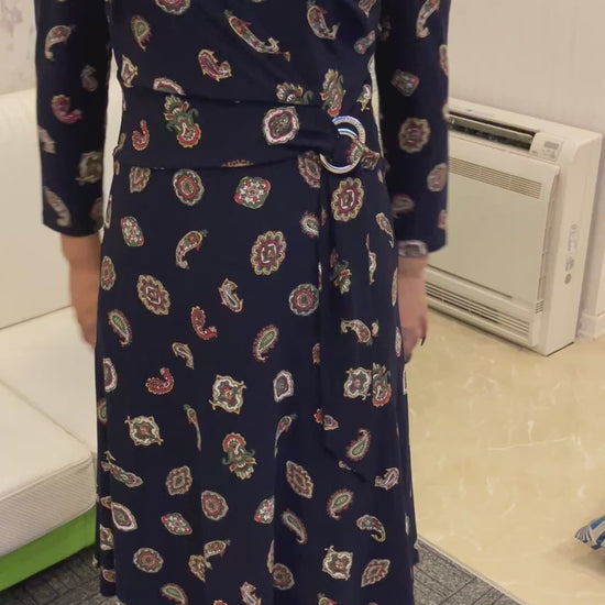Lauren Ralph Lauren Women’s Paisley Dress Navy Long Sleeve Size 2