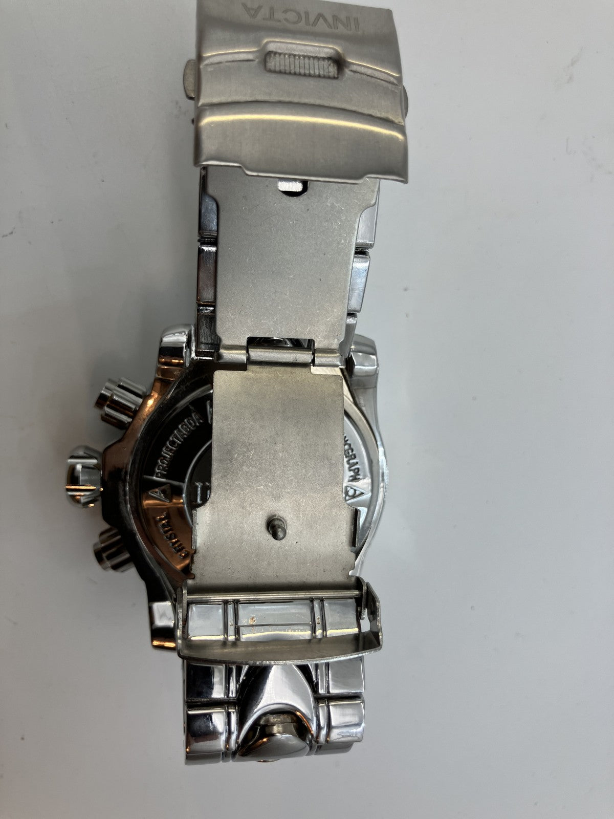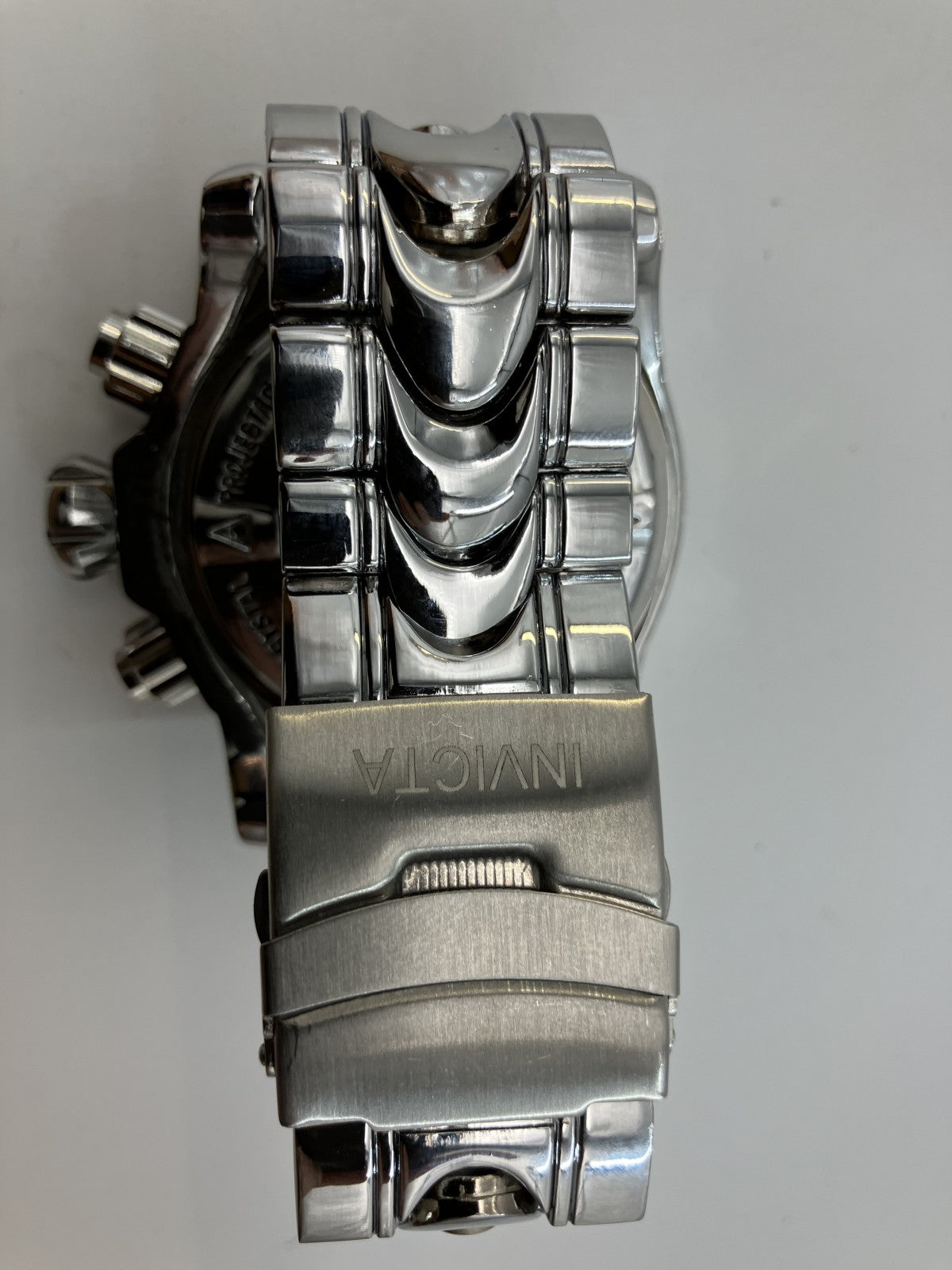 2.4" Case Width, Super Big Face Invicta Chronograph Men's Watch, Fits 6.7" Wrist, Includes 6 Extra Links, Silver Case, Free Shipping