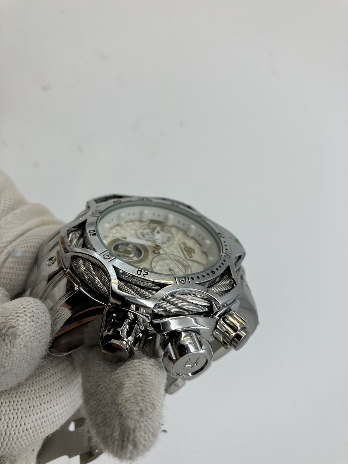 | Production features | This is a men's watch from Invicta that boasts an impressive 2.4" case width. The shine of the silver stainless steel and the unique dial design give it a strong presence. Fits wrists around 6.7" and comes with 6 extra links. Includes a dedicated case. When tried on by a model (height 72.4" / weight 82kg / chest 43.3" / waist 31.1" / hips 40.9" / arm circumference 6.5"), the fit was such that one finger could be "screwed in." It is neither too big nor too small, with just the right amount of room to fit. [Brand appeal] Invicta is a globally popular brand known for its bold designs and big faces. This particular model features a bezel with wire decoration and a three-dimensional dial, making it a highly acclaimed masterpiece among collectors and watch enthusiasts. It combines durability and individuality, creating a presence that is instantly recognizable. [Safe transactions] ・This product is 100% authentic (inspected) and purchased from a major domestic auction dealer. ・Secondhand dealer license number: No. 431360059517 (Saitama Prefectural Public Safety Commission) ・If the product description differs from what you expected, we will respond in good faith. ・Multilingual support is also available. [About returned goods] ・If the product is significantly different from the product description, we will accept returns. -We cannot accept returns for reasons of customer convenience, so please be sure to check the images and descriptions. We will deliver it to you free of charge. |