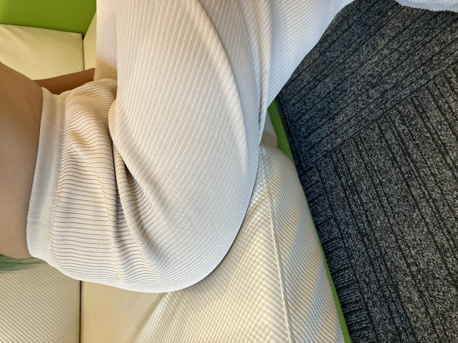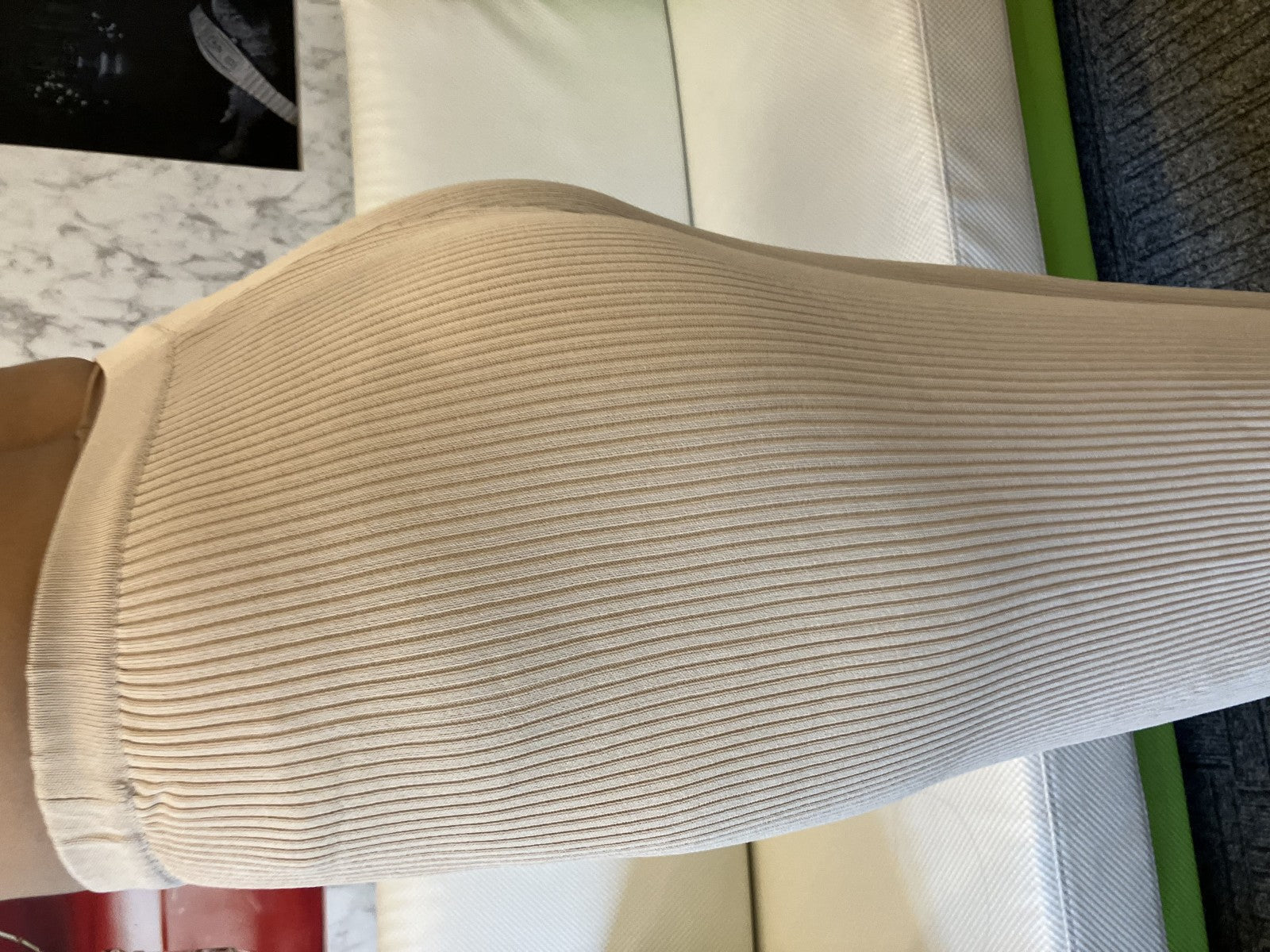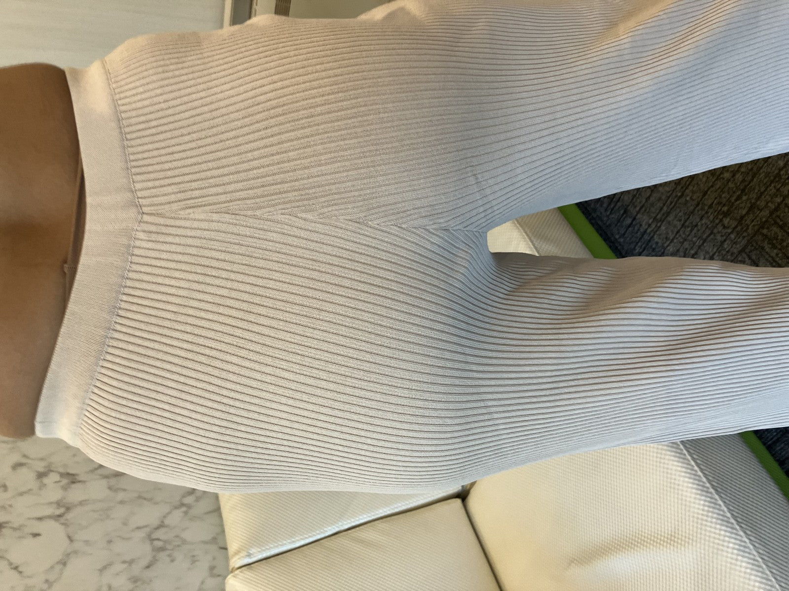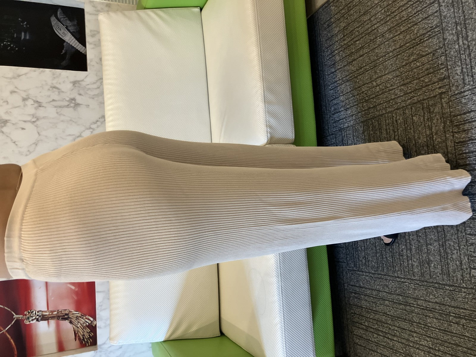 Celine ecru ribbed knit flared pants, high-waisted, light beige, size 36, made in Italy, pull-on style