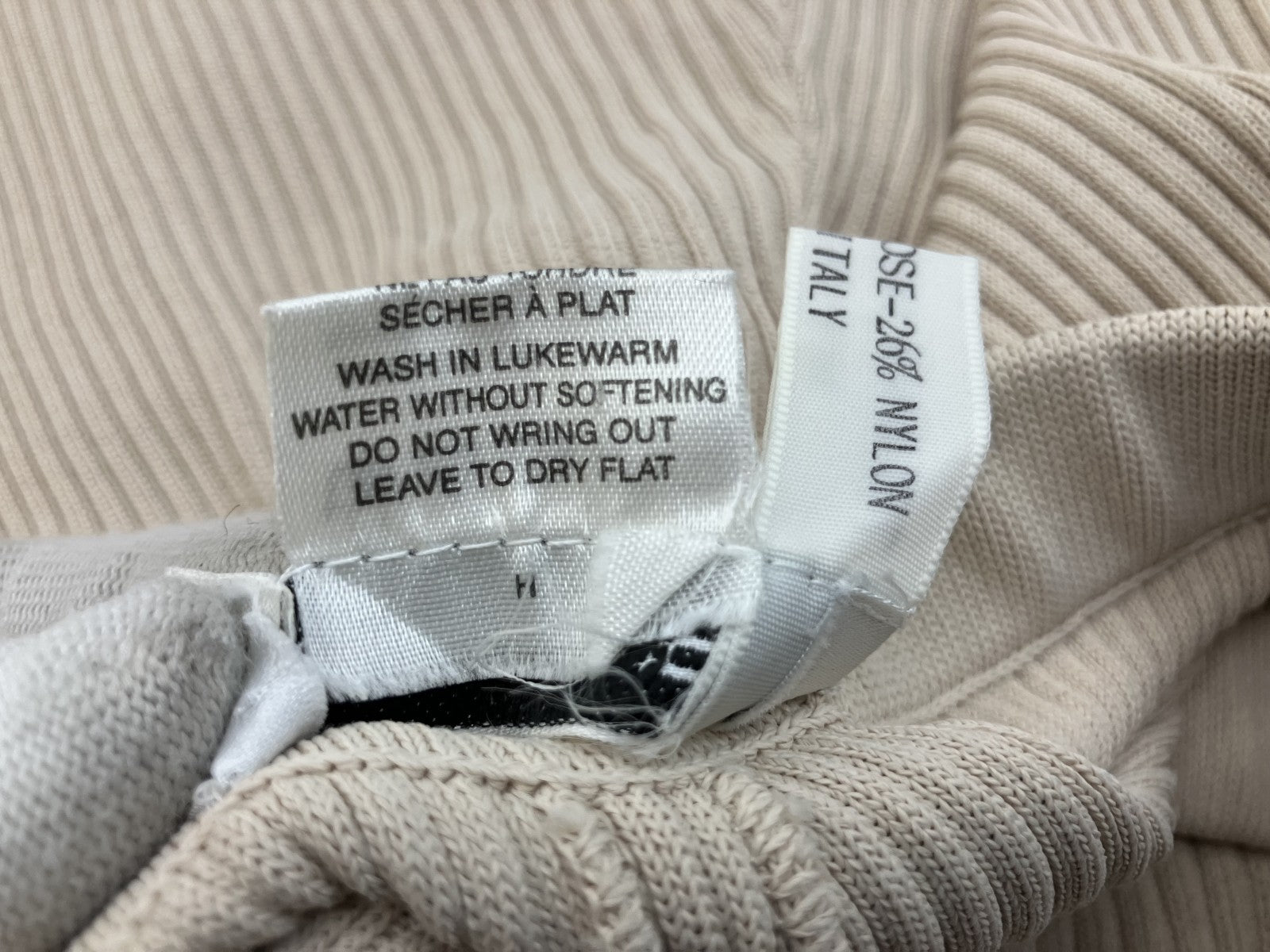 CELINE Paris Flare Pants Ecru Beige Rib Knit High Waist Pull-On Size 36 Made in Italy
