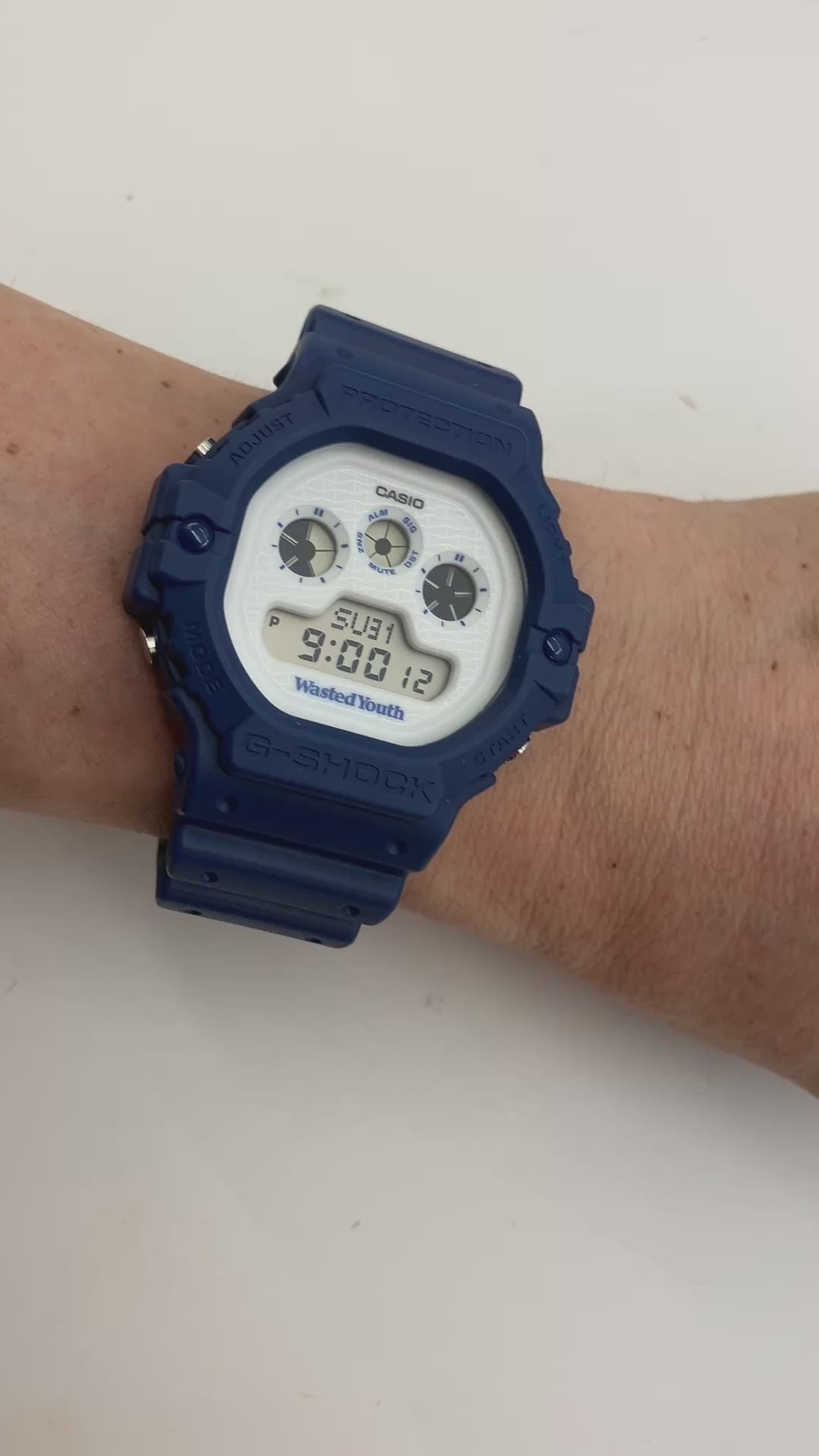 | - Model: DW-5900WY-2JR (Module 3465) - Wasted Youth collaboration - Color: Blue with white dial - Case width: approx. 47 mm - Water resistance: 20 BAR / Shock Resistant - Functions: EL backlight, stopwatch, countdown timer, alarm, 12/24-hour - Country of origin: China (caseback) - Included: Outer box, can-style case & lid, Japanese manual (3465*JA), stamped Japanese warranty card (expired) Why this collaboration is sought-after Wasted Youth is a popular street project by Japanese artist VERDY (also known for Girls Don't Cry). G-SHOCK collaborations are limited in production and often sell out quickly; the DW-5900WY-2JR is not part of the regular lineup and is rarely restocked. Exclusive details I CAN'T WASTE MY TIME ANYMORE - bezel text, WY logo caseback, special blue/white colorway, and a unique can-style box make it a collectible piece. Based on the classic DW-5900 Triple Graph - design, a 90s favorite that remains popular with collectors. Authenticity 100% authentic, sourced from a major Japanese dealer auction. Dealer license No. 431360059517 (Saitama Public Safety Commission). Shipping & Notes Ships worldwide from Japan. Shipping fees vary by destination and service and will be calculated at checkout (combined shipping available where possible). Import duties/taxes are the buyer responsibility. Listed on multiple marketplaces and may sell out. If the item significantly differs from the description, we will respond honestly. Communication available in English/Japanese. |