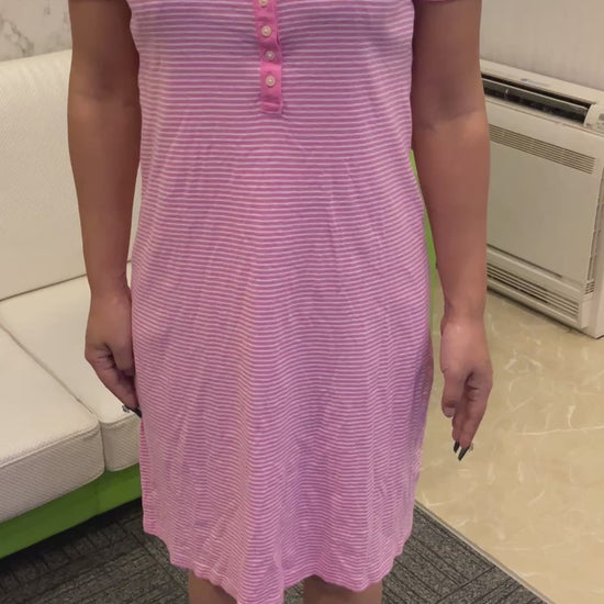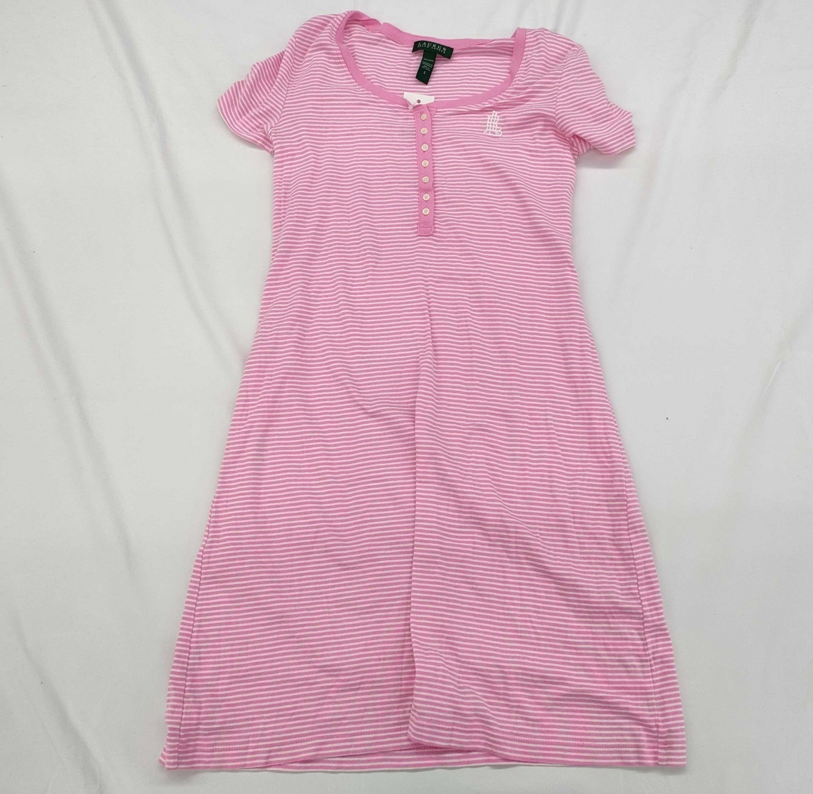 LAUREN RALPH LAUREN short-sleeved knit dress in pink with stripes, size S