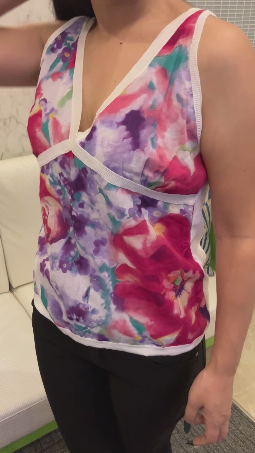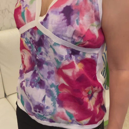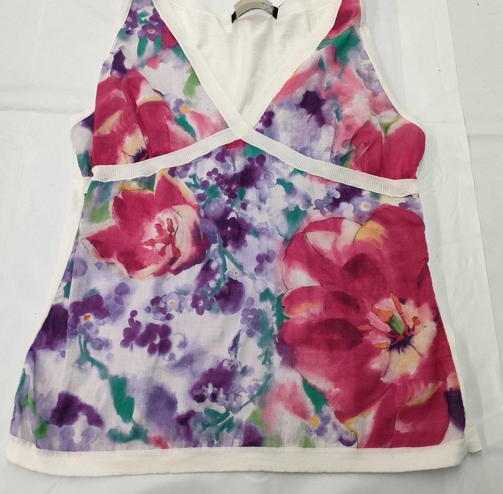 Salvatore Ferragamo floral print sleeveless top, size L, 100% cotton, made in Italy, V-neck