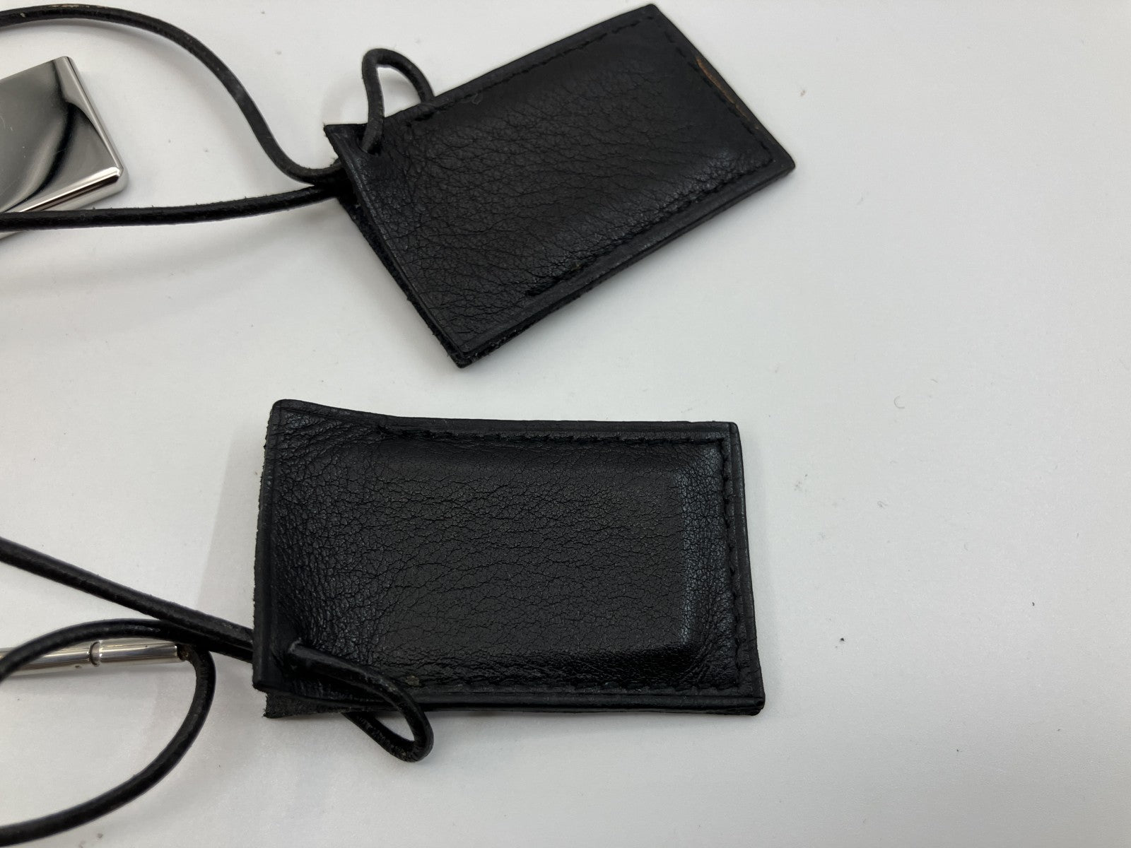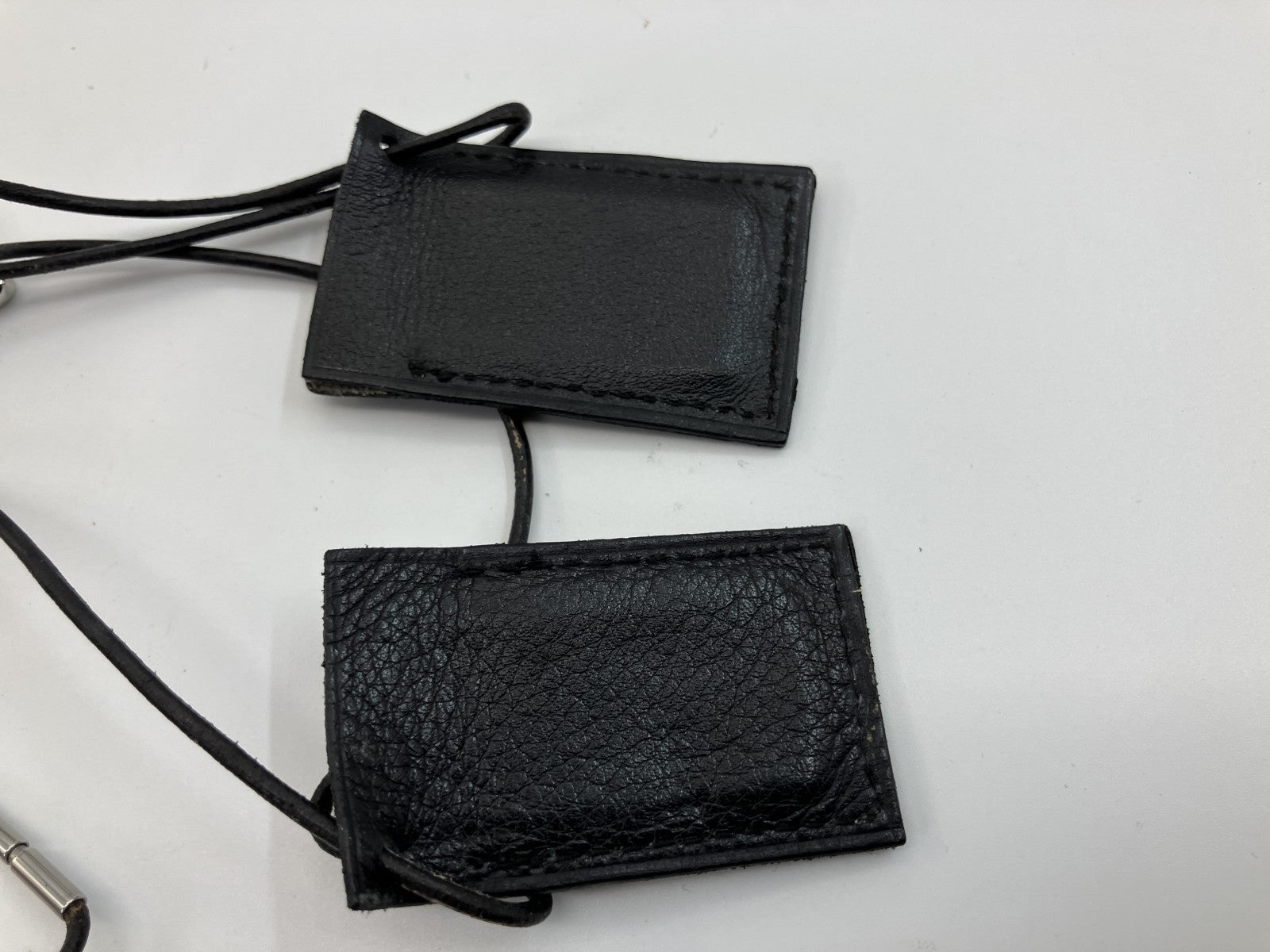 HERMES 2000 Symbol Pair Necklace with Metal Top and 4x0.8" Leather Cord in Black