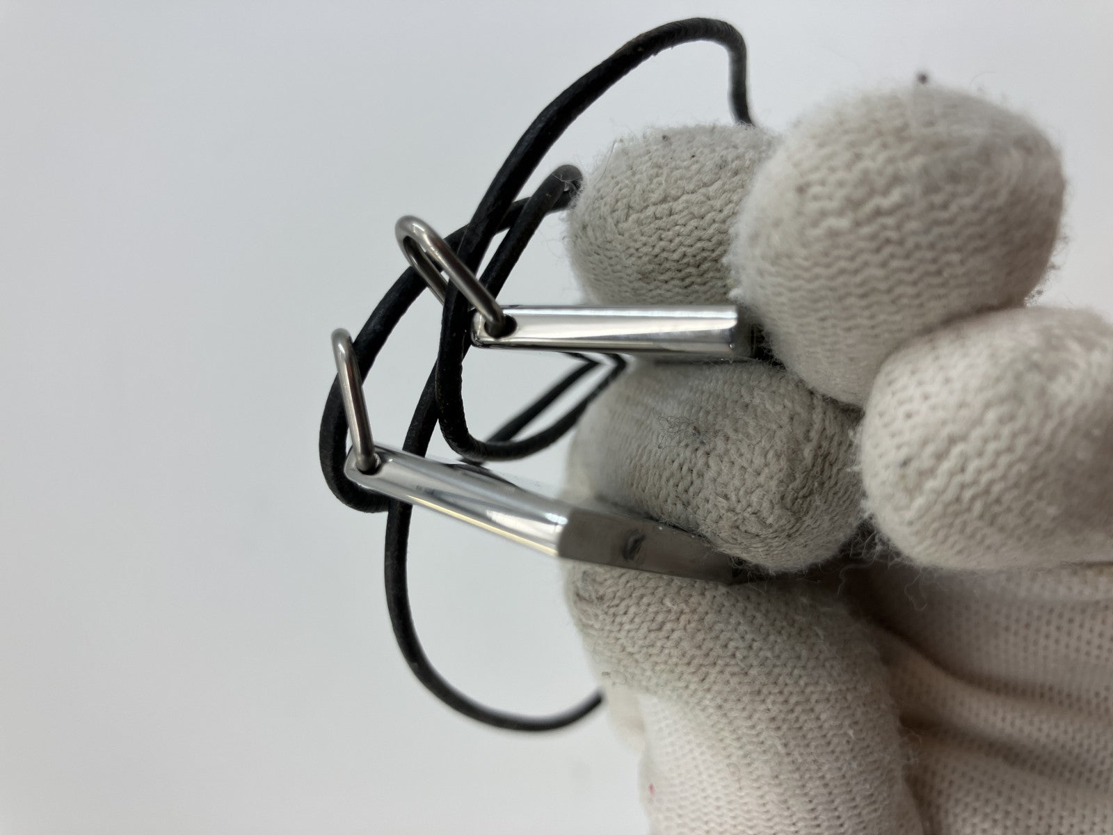 | Condition Details | Pre-owned. Surface scratches and scuffs on the metal parts, wear and slight peeling on the leather cords and leather holders. No major damage or functional issues. Ready to wear. |
