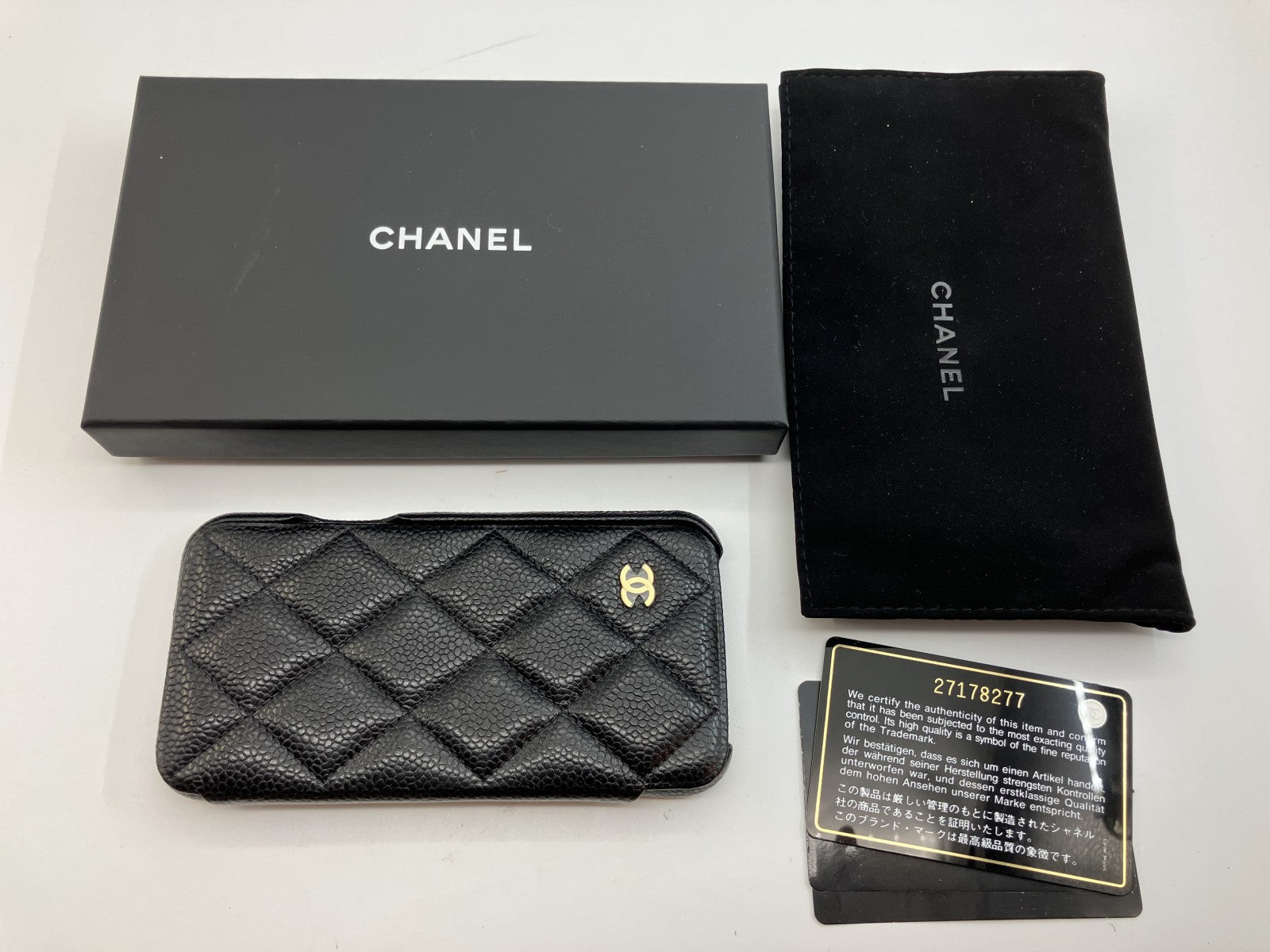 CHANEL Caviar Leather Wallet-Style iPhone Case, Black, Compatible with iPhone X and XS, Serial Number Included, Box, Dust Bag, and Guarantee