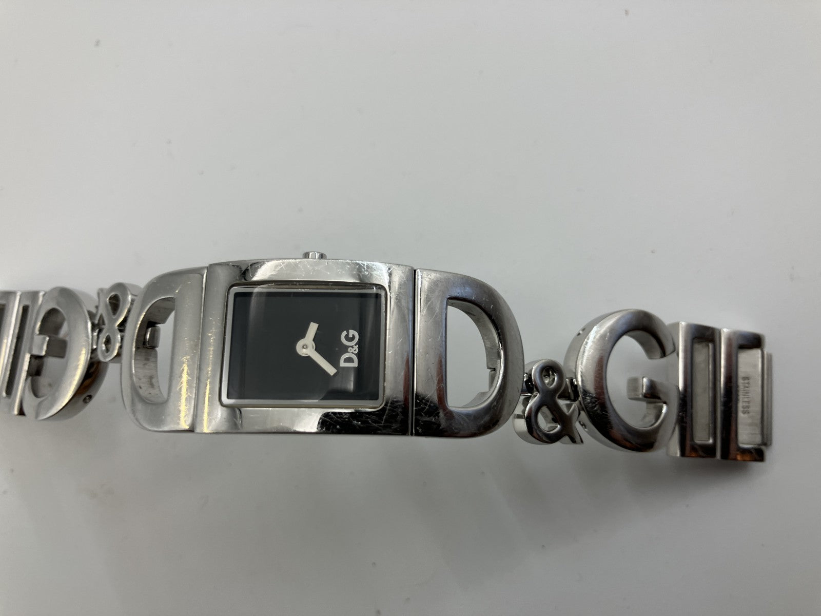 DOLCE & GABBANA Logo Quartz Watch Women Silver Stainless Steel Wrist 15cm 20mm Case
