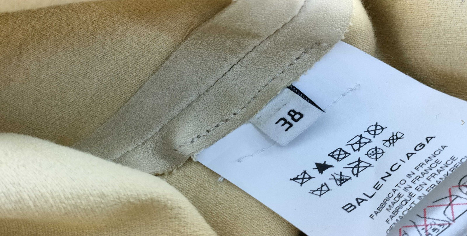 BALENCIAGA Lambskin Pants, Beige, Size 38, Zippered Hem, Genuine Leather