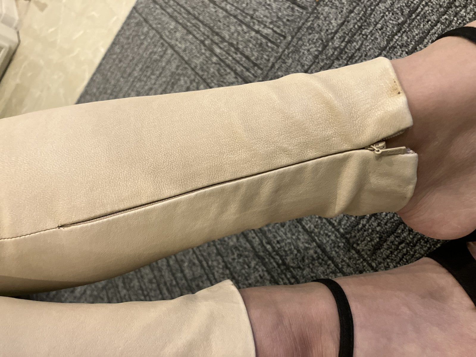 BALENCIAGA Lamb Leather Pants Beige Size 38 Genuine Leather Zip Hem