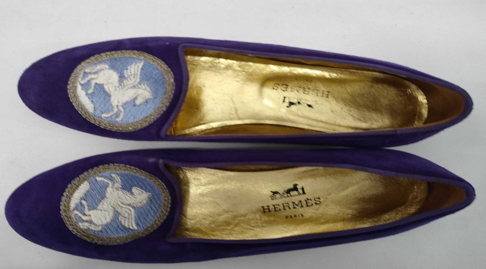 HERMES Pegasus Embroidered Suede Flats Purple EU 35 / US 5.5 / JP 22.5cm Women’s Shoes