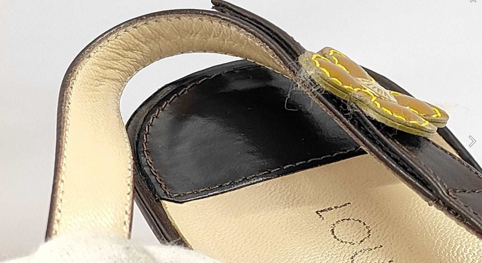 | Condition Details | • Minor scuffs and wear on heel surfaces • Light dirt and wear on insoles • Slight wear on strap edges • Minor fraying around flower stitching • Outsoles show normal wear from use No major damage and still fully wearable. Please review all photos carefully for condition details. |