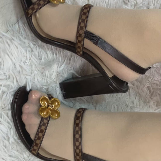 LOUIS VUITTON Damier Flower Block Heel Sandals (JP 23.3)(EU 37)(US 6.5)