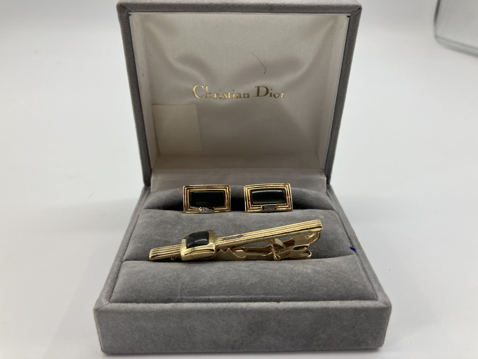 Christian Dior cufflinks and tie pin set, gold, with case,