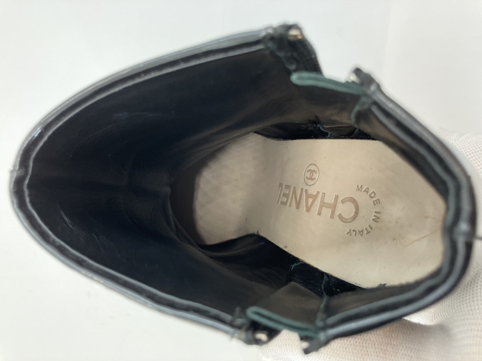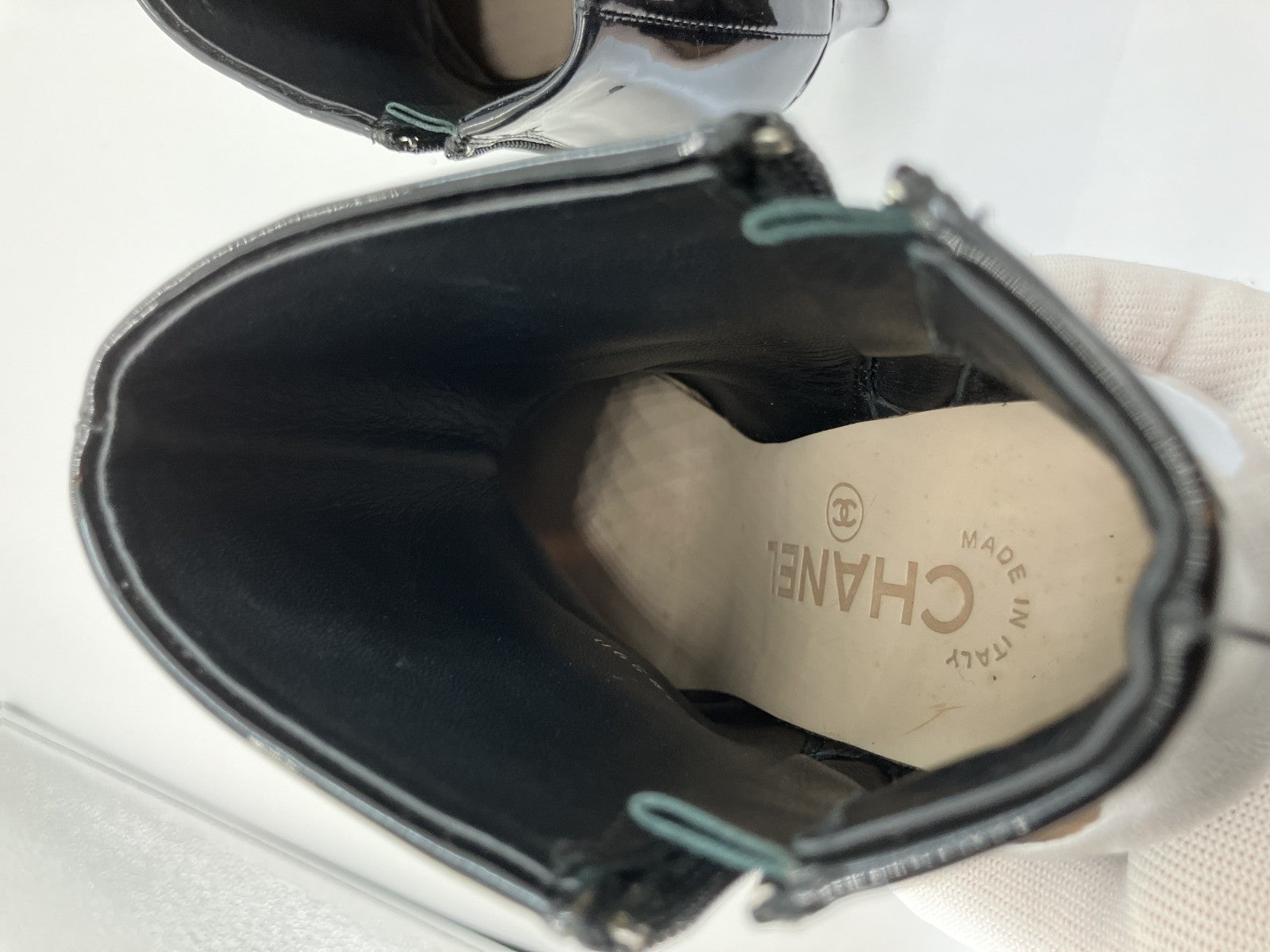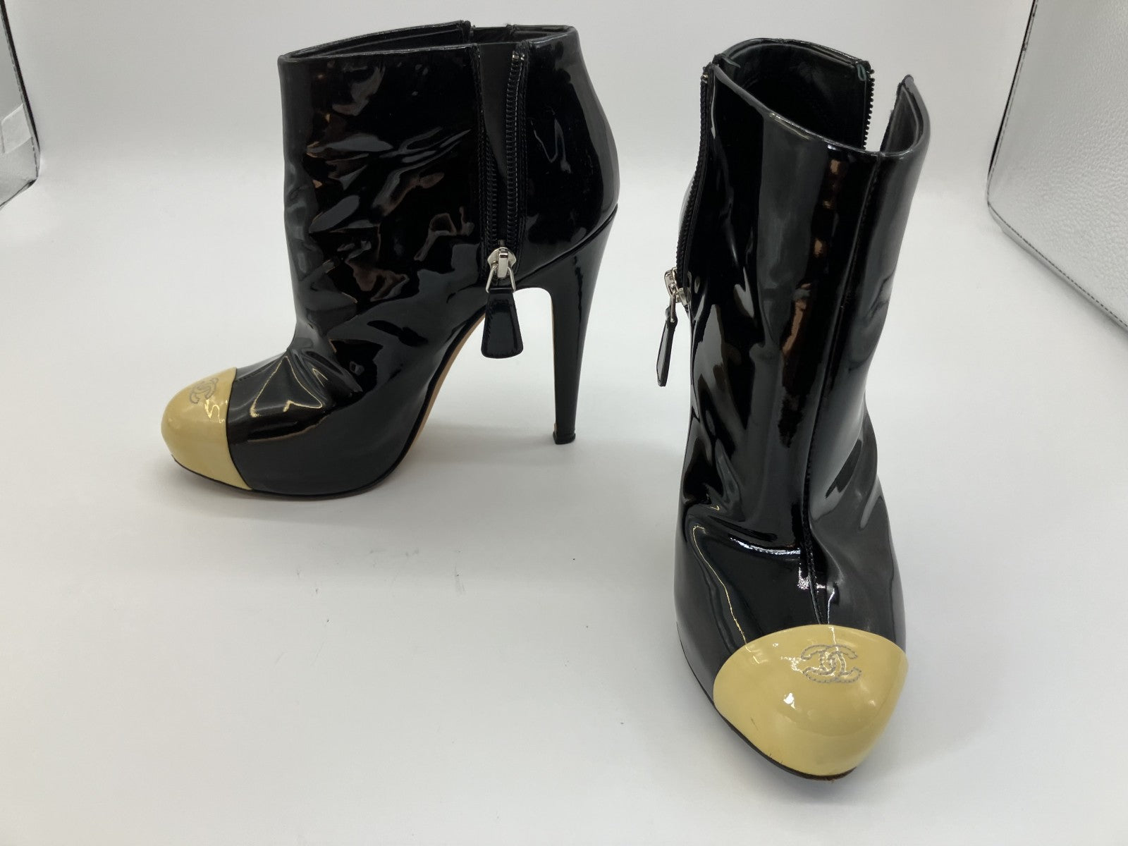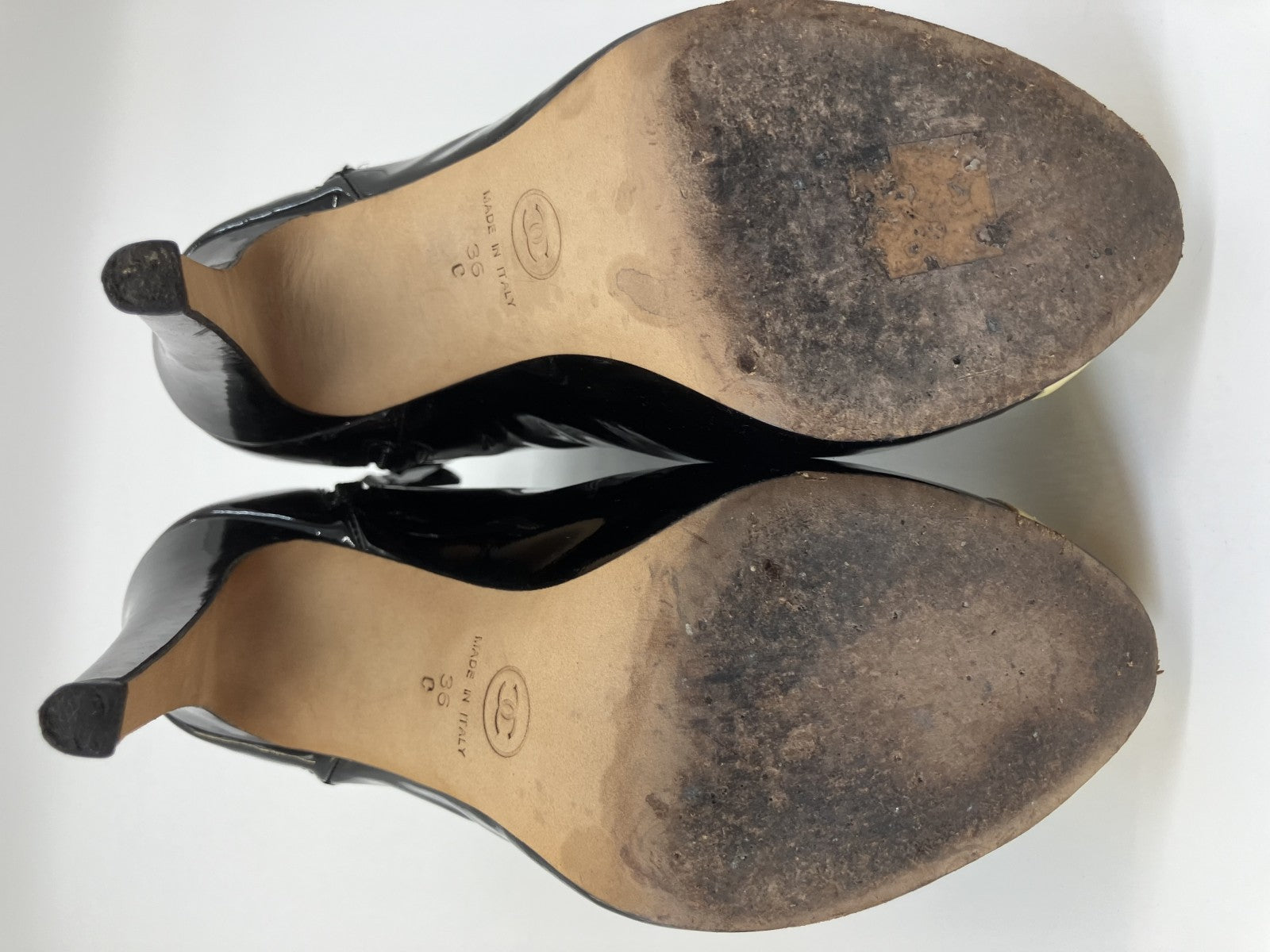 CHANEL short boots patent leather 36 (US 6) (22.9 cm) (9.02 inch) heel around 11.5 cm black & yellow
