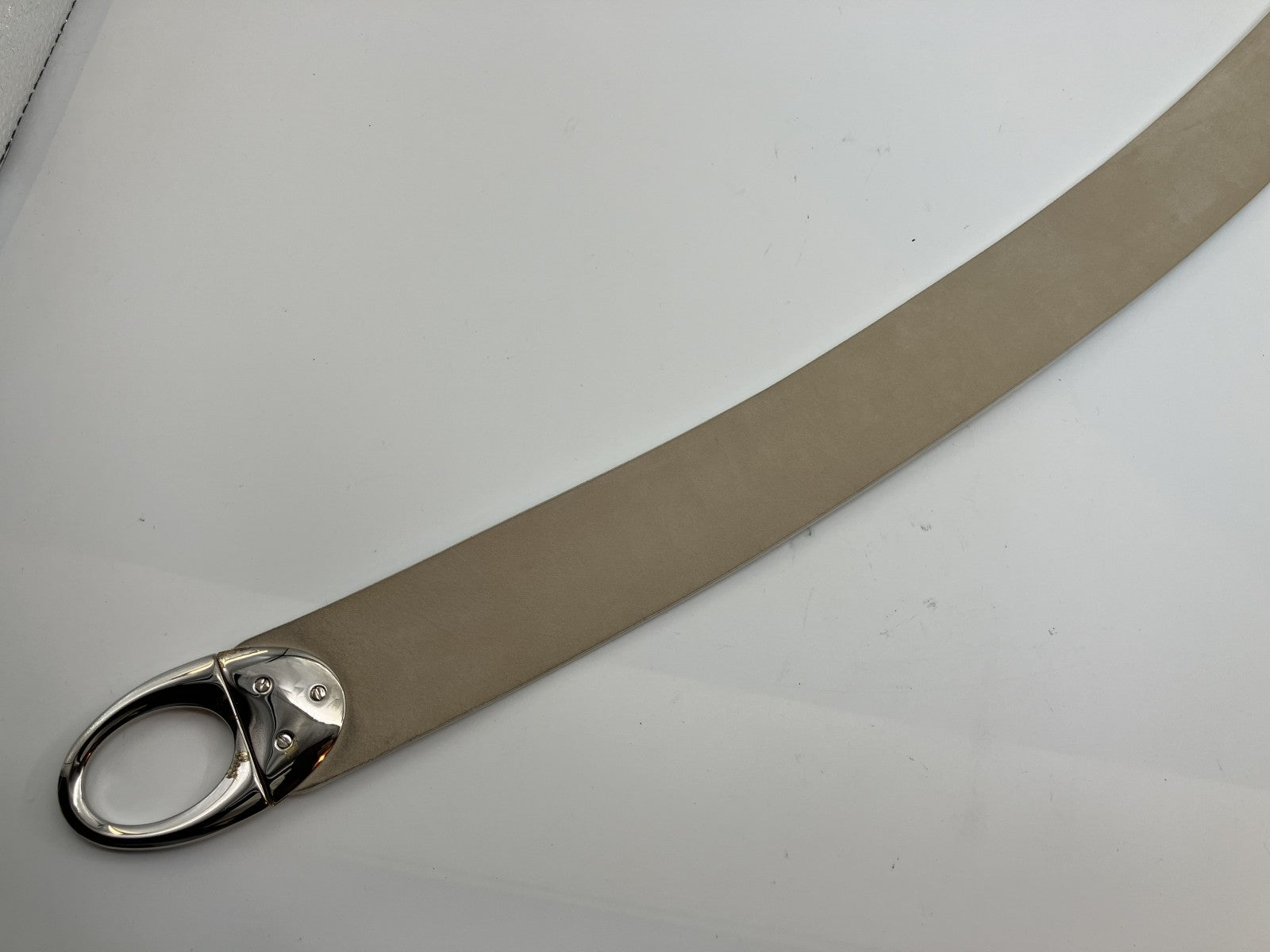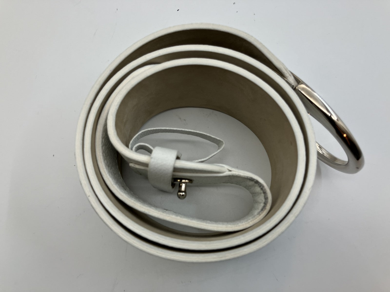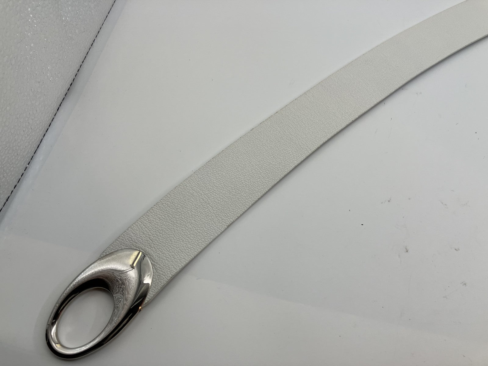 Bulgari Leather Belt Total Length 100cm (39.37 inch) Width 5cm (1.97 inch) White & Silver Box and Bag Included