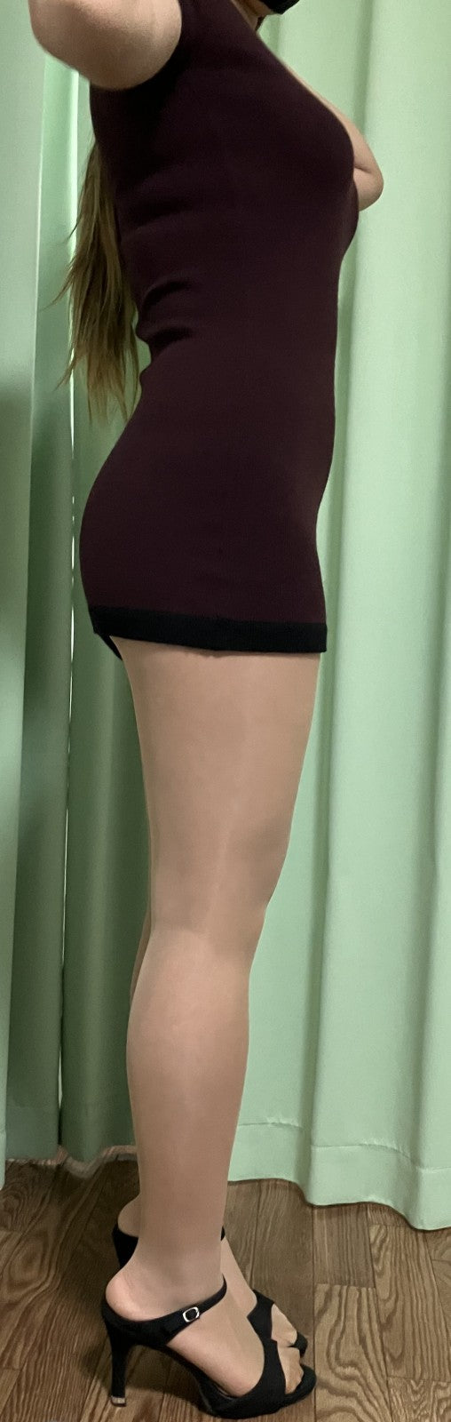 CHANEL Cashmere Dress Burgundy x Black Length 29.1" Waist 13.4"